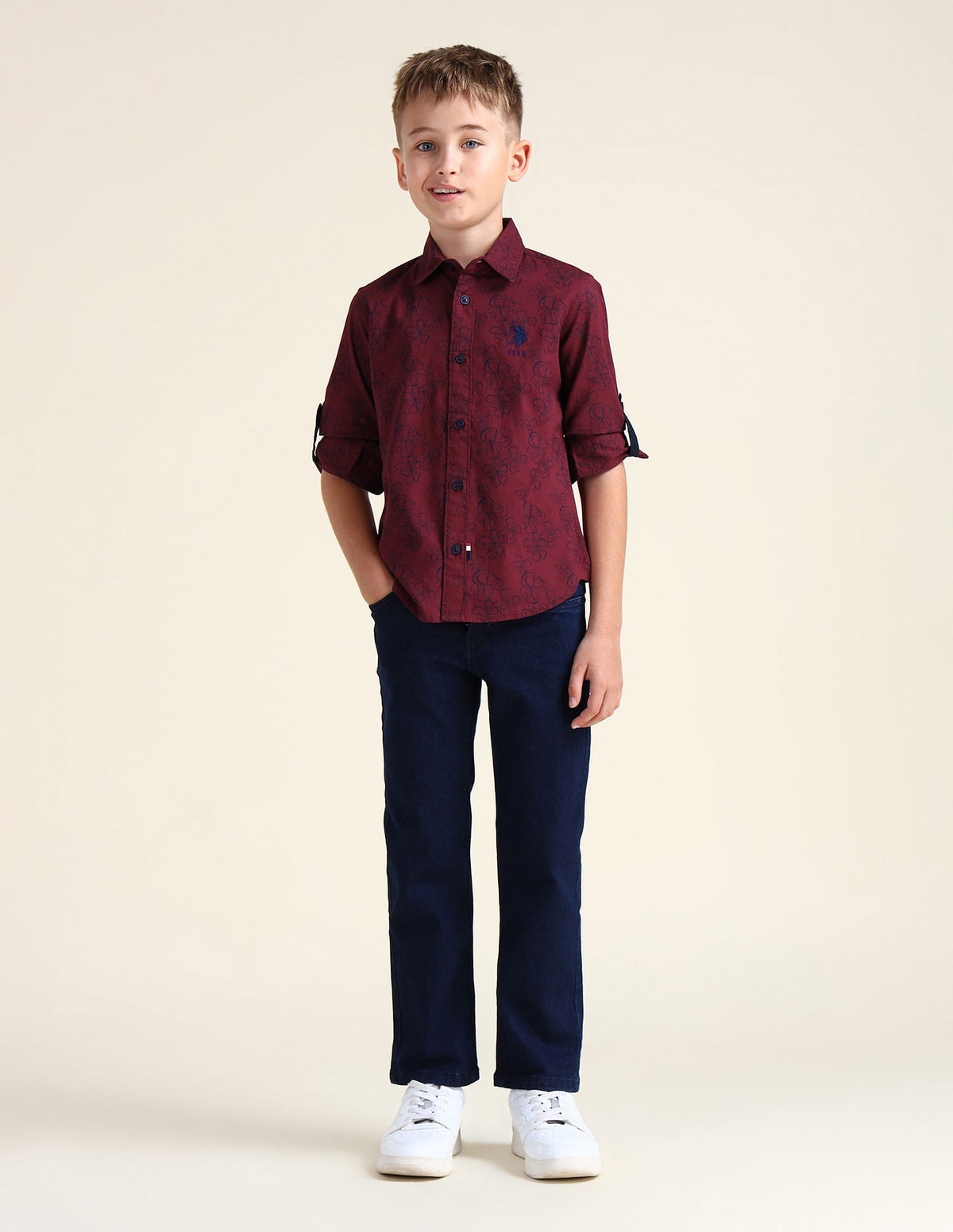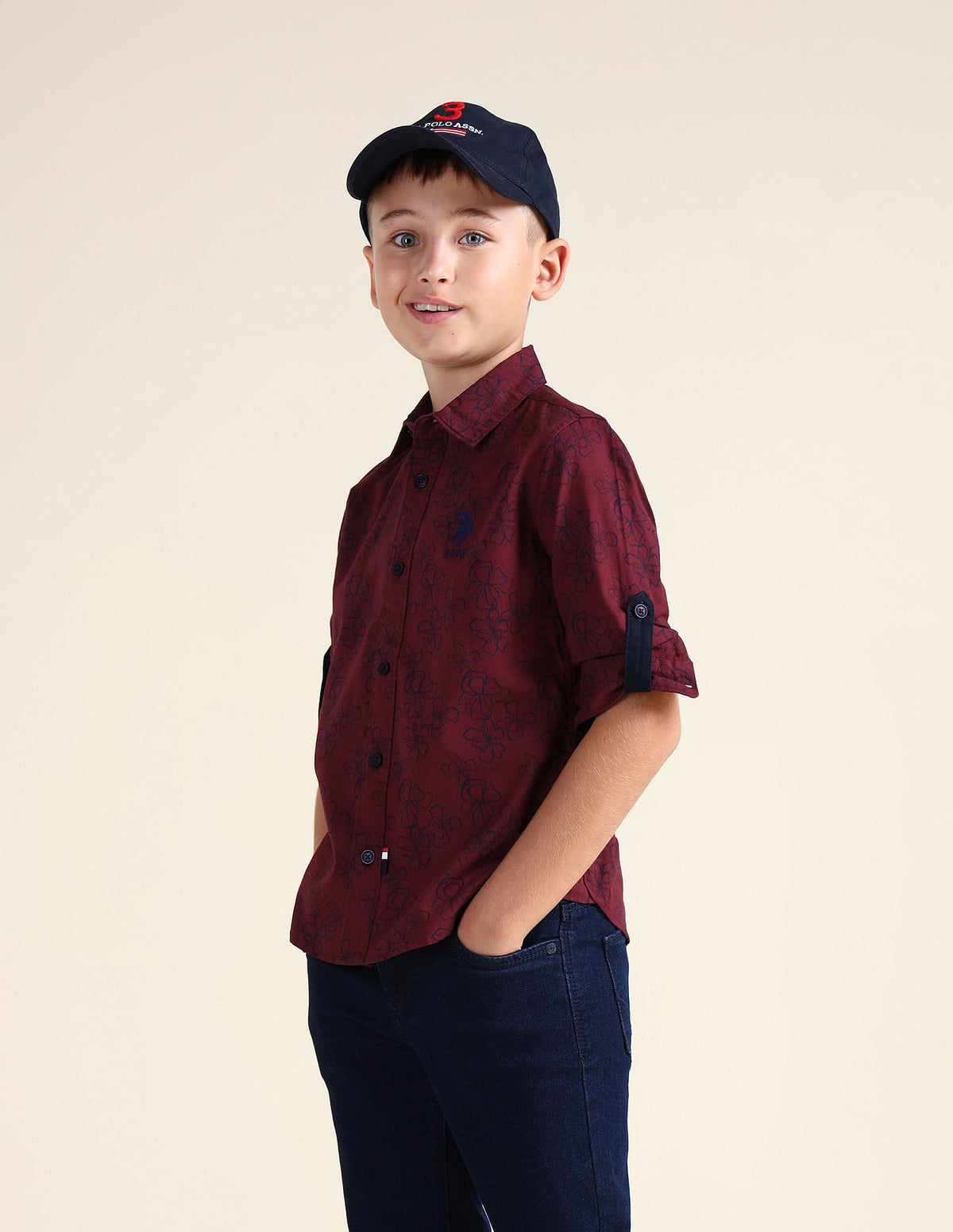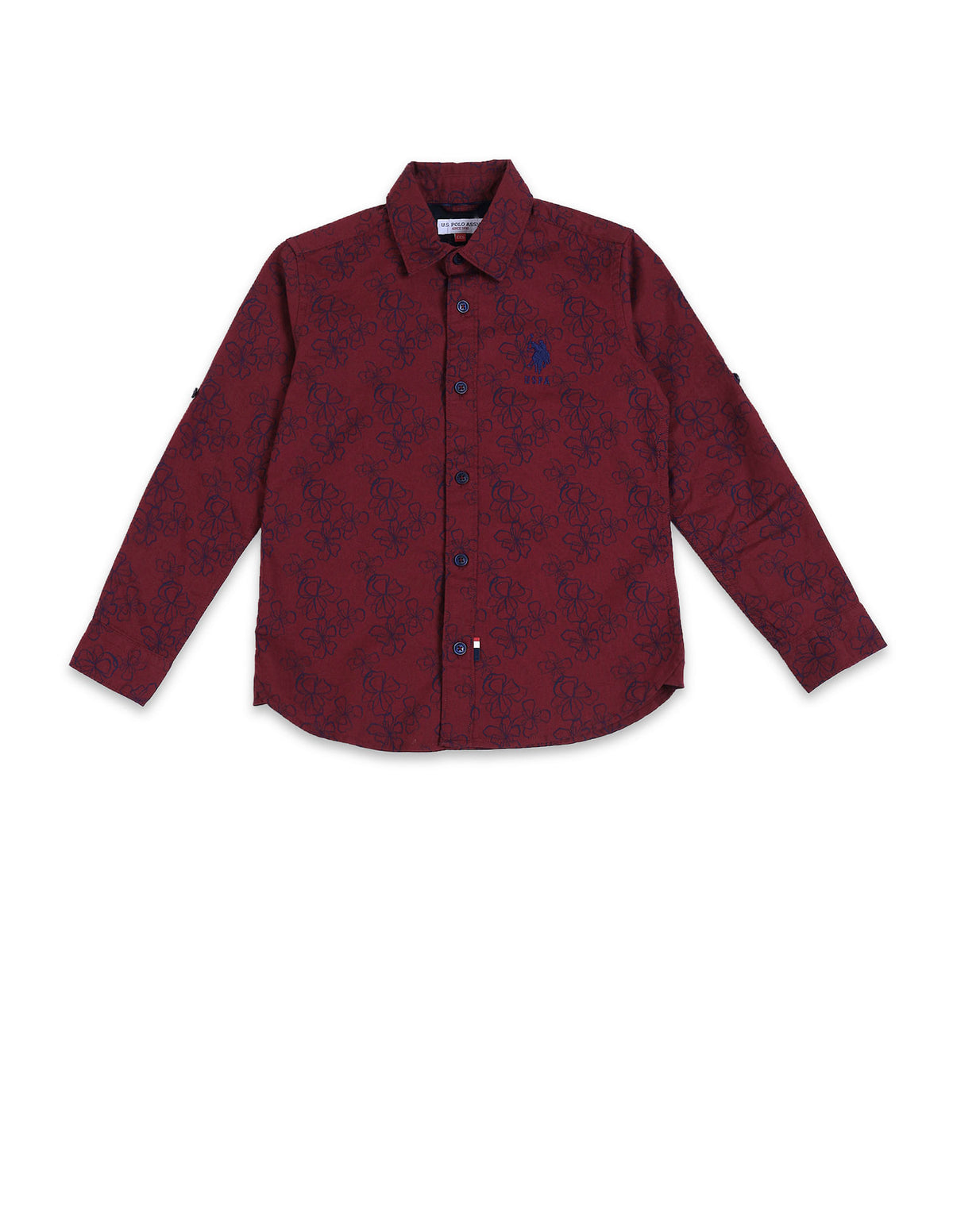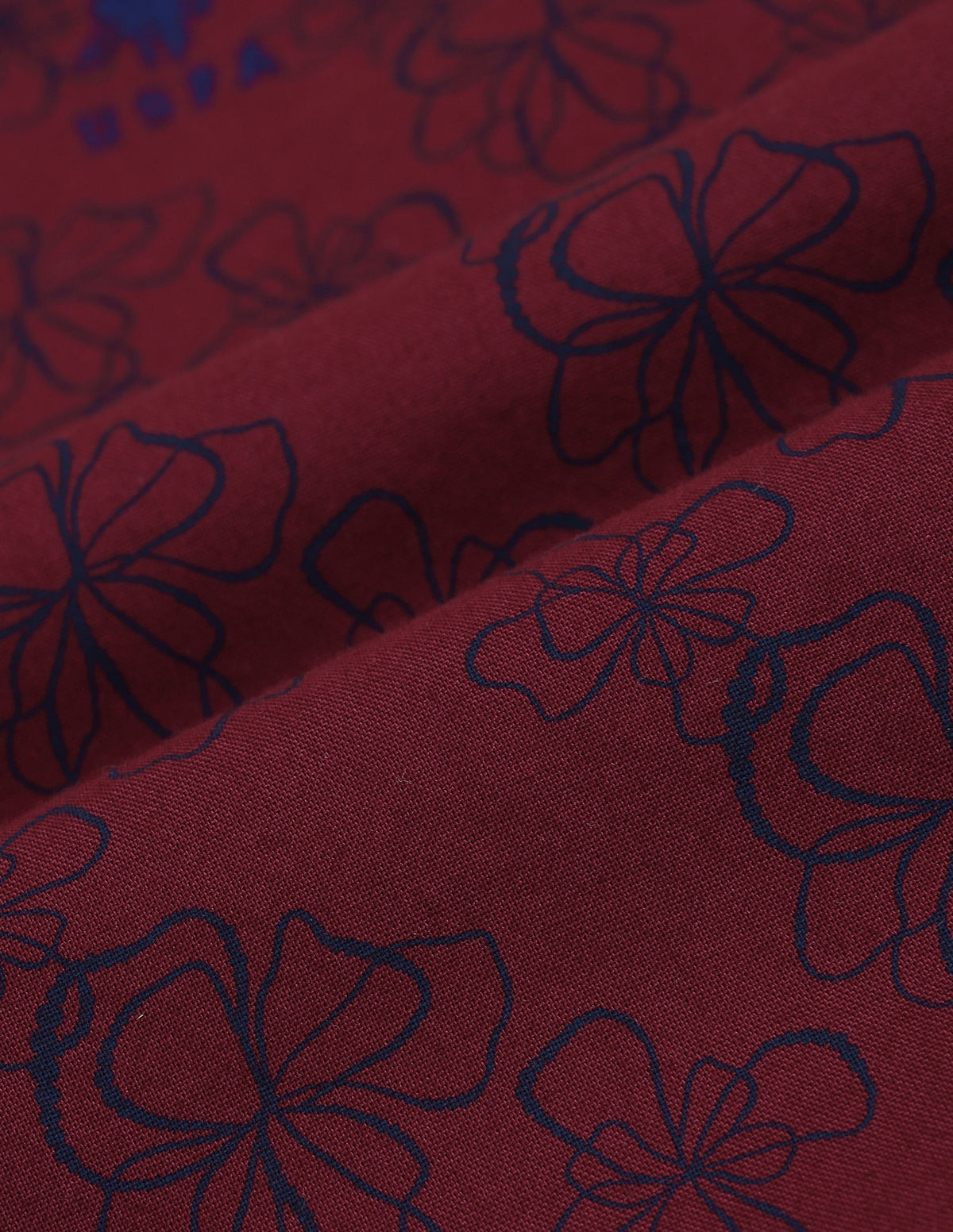 | Spread collar | Embroidered logo at chest | Full button placket | Long sleeves with rounded cuffs | Curved hemline | Floral printed pattern | Oxford weave | Regular fit |