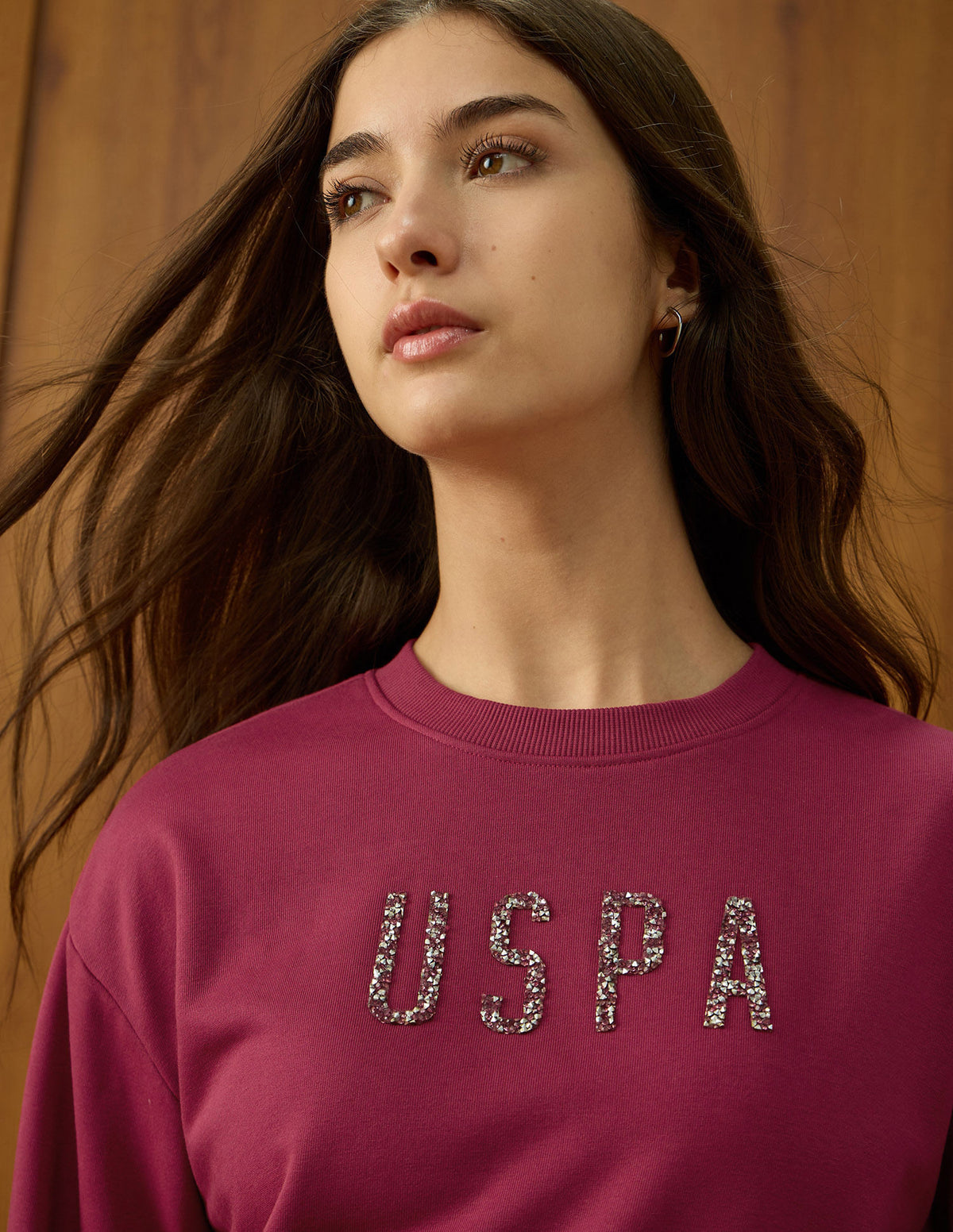| Crew neck | Long sleeves | Ribbed sleeve hems and hemline | Brand sequinned pattern | Knitted | Drop shoulder fit |