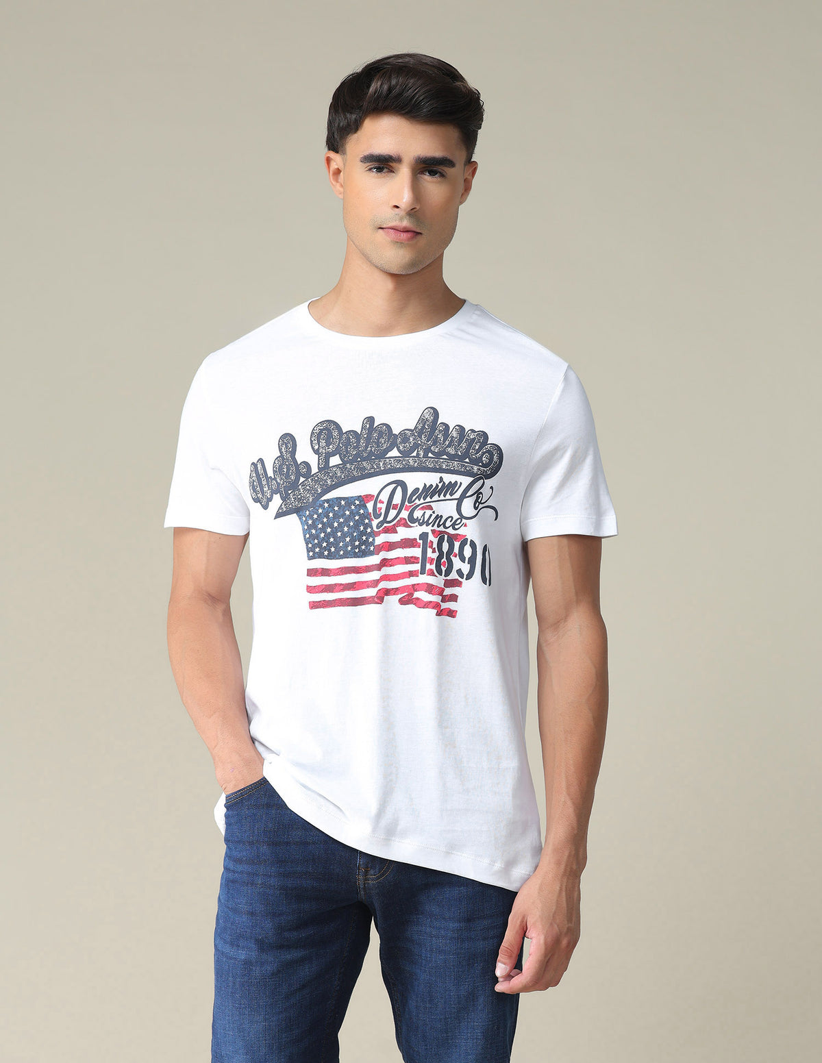 Story: The ribbed crew neckline of this printed t-shirt ensures comfort and shape retention that withstands repeated wash and wear.