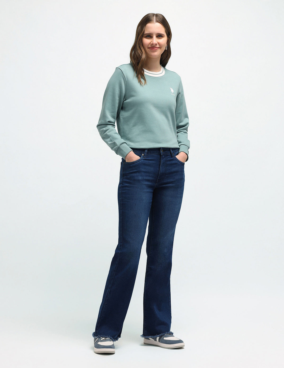 | Striped crew neck | Logo at chest | Long sleeves | Ribbed neck, sleeve hems and hemline | Solid pattern | Knitted |
