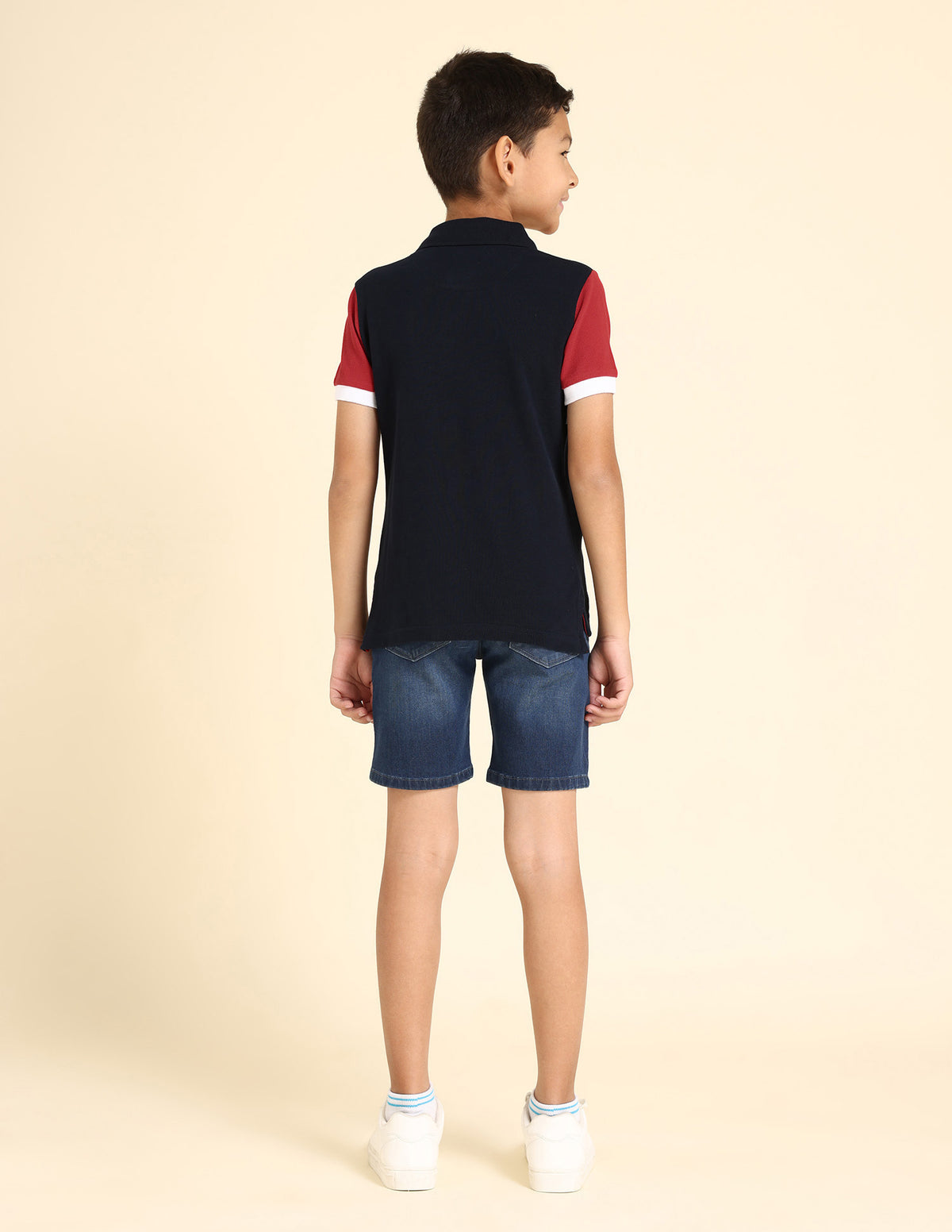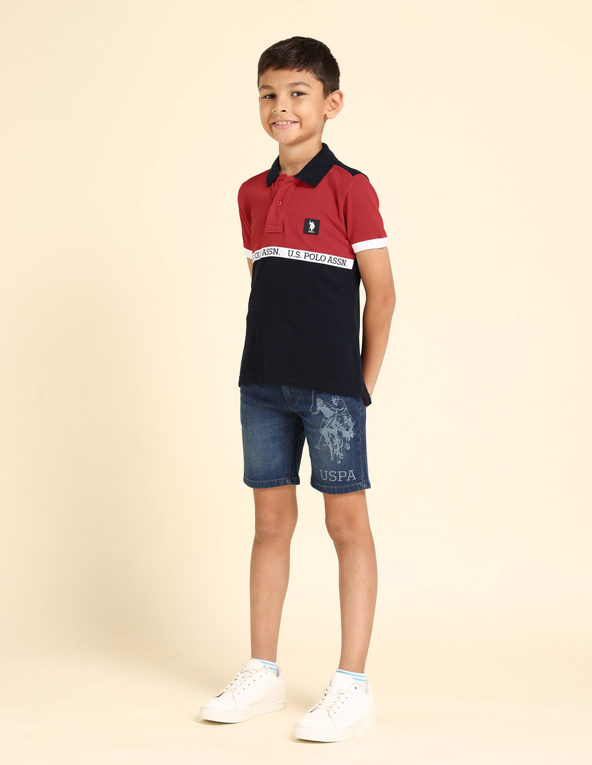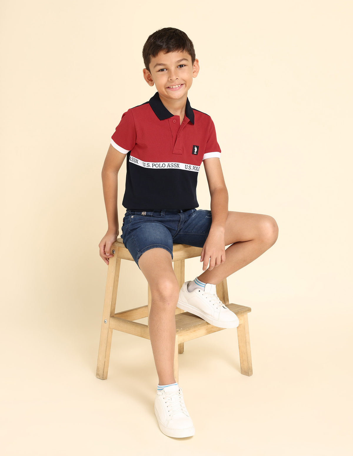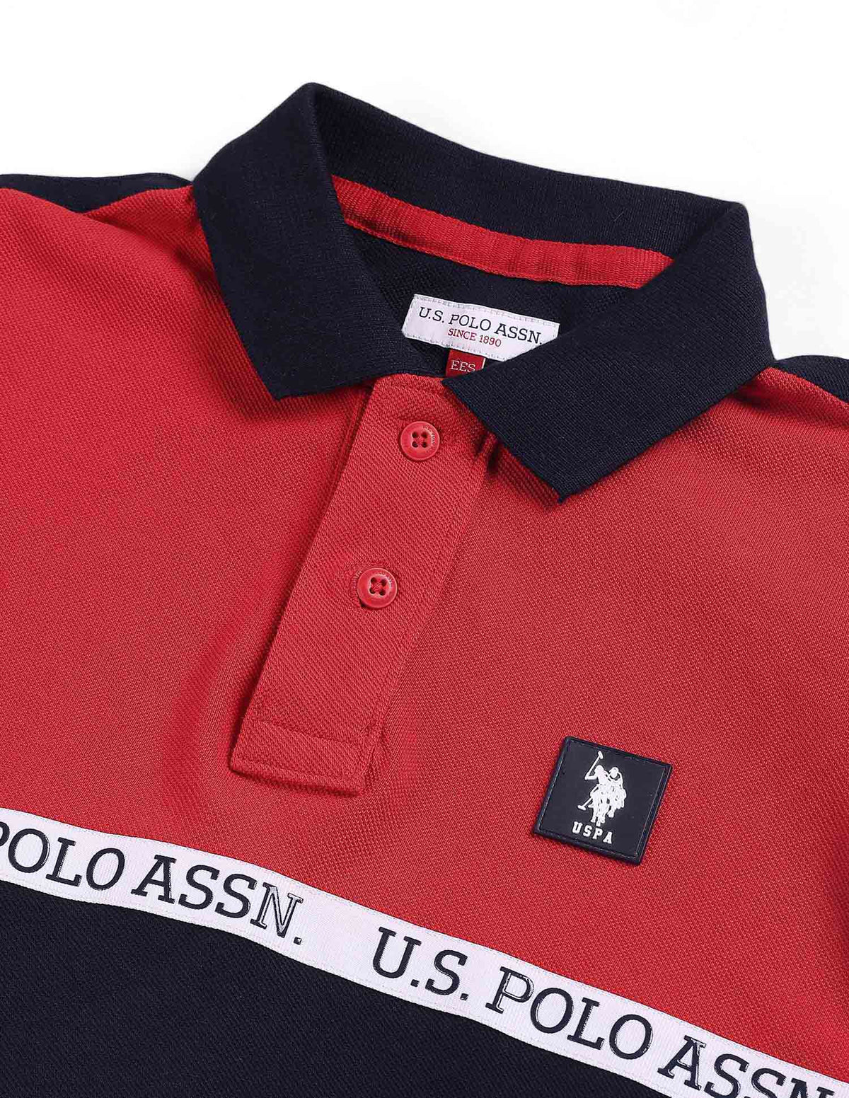 | Polo collar | Logo badge at chest | Short button placket | Brand taped at chest | Short sleeves | Ribbed collar and sleeve hems | Uneven vented hemline | Colourblocked pattern | Pique knit- New Season - Summer Heroes