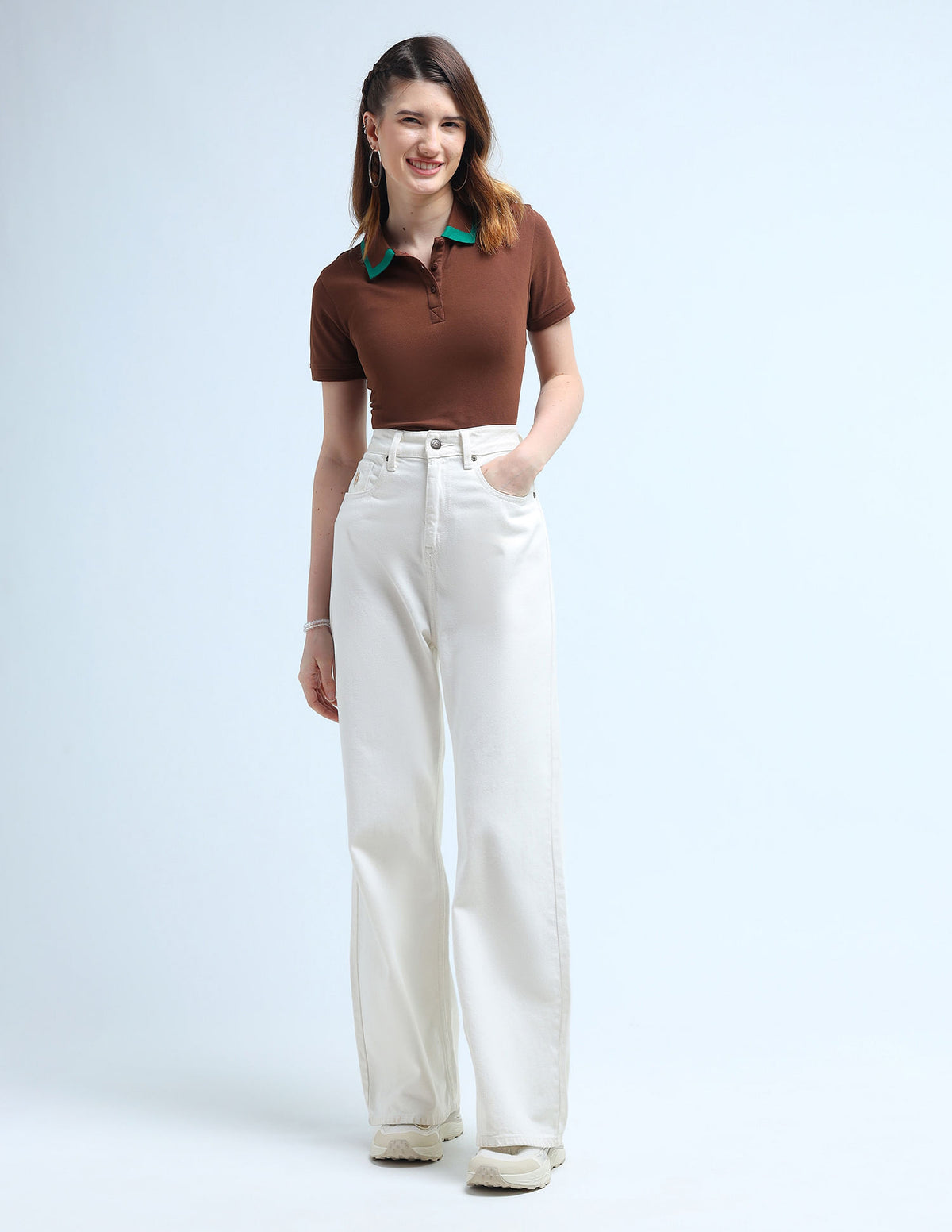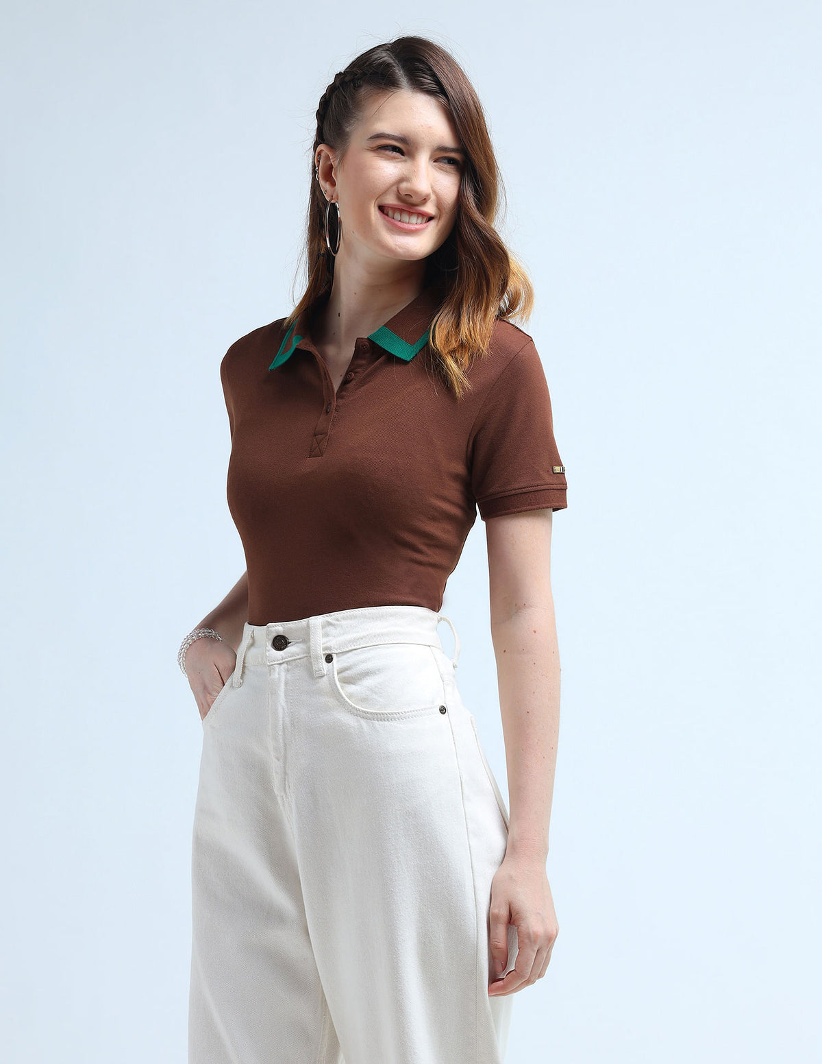 | Tipped polo collar | Short button placket | Short sleeves | Metallic branding at left sleeve | Ribbed collar and sleeve hems | Vented hem | Solid pattern | Pique knit | Regular fit