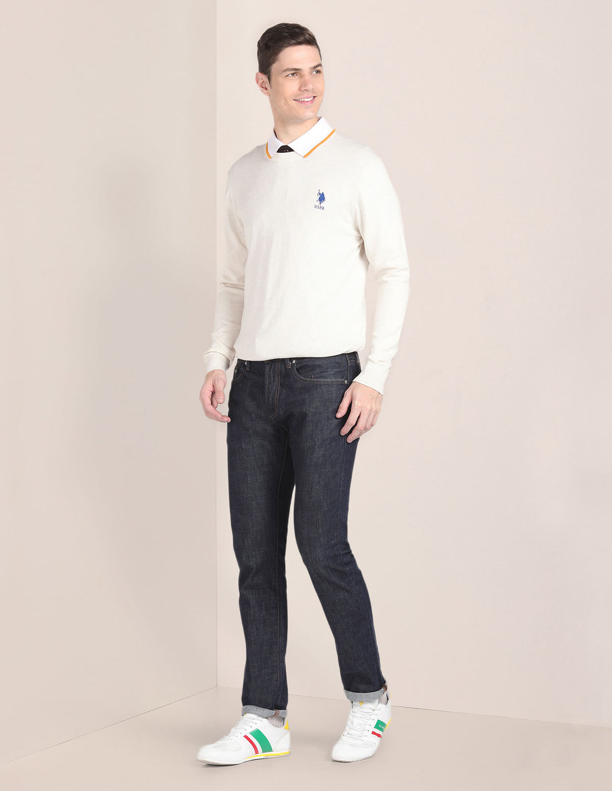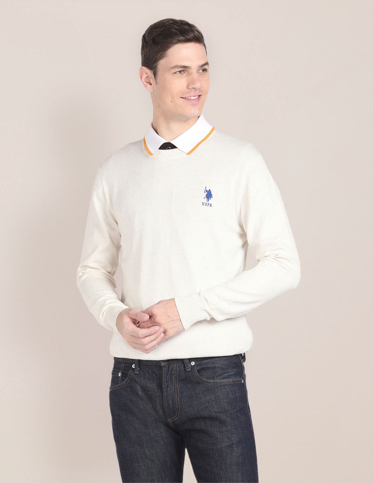 Story: Add to your wardrobe this winter essential sweater from the Polo Verse collection featuring a ribbed neck and long sleeves.