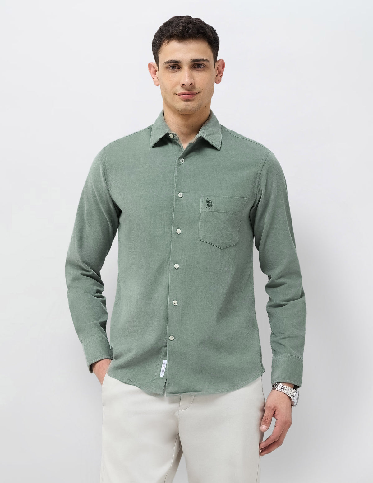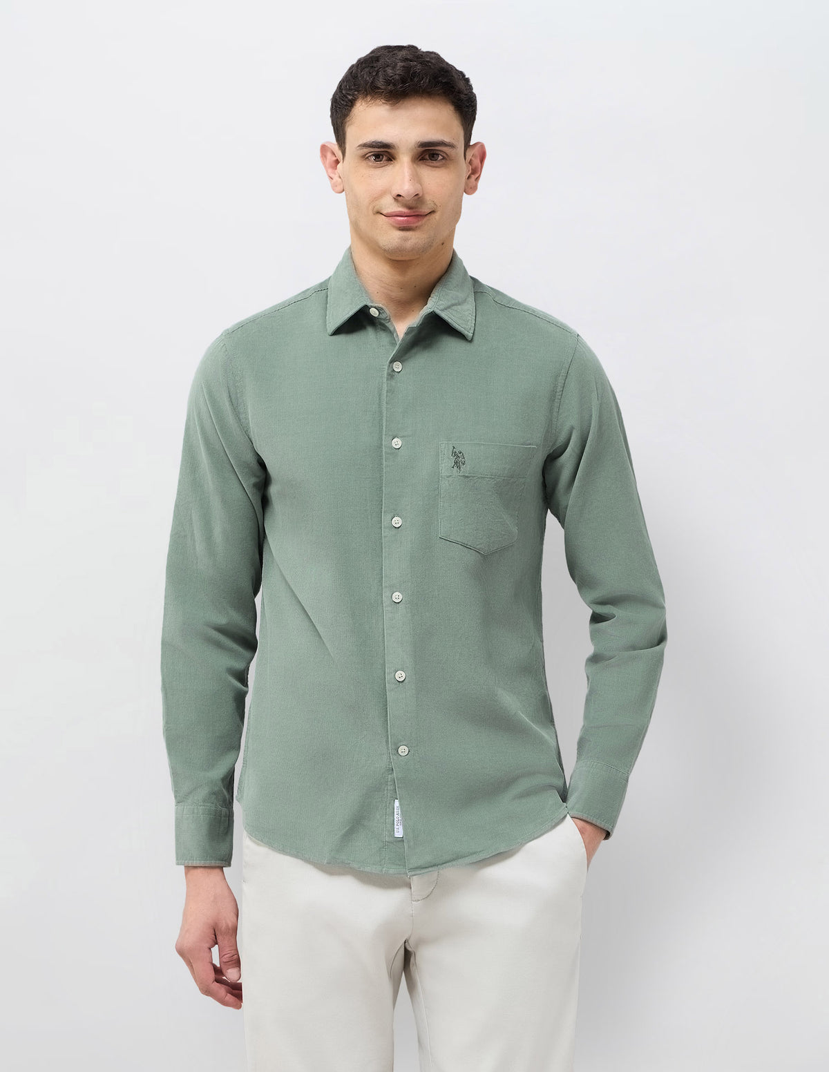 Story: This men's solid winter shirt combines casual warmth with clean styling, perfect for cooler days and effortlessly refined seasonal comfort.