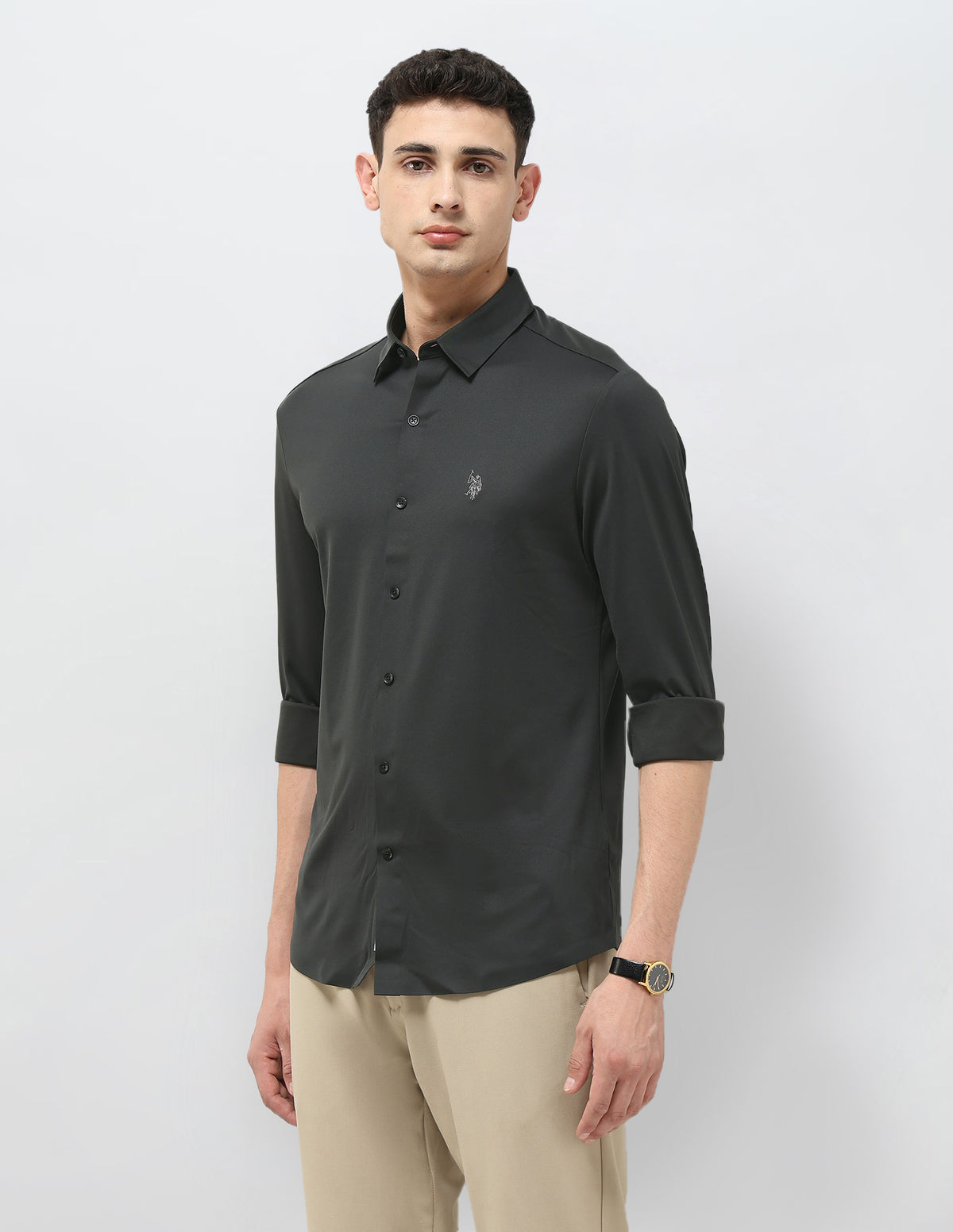 Story: This men's solid shirt offers versatile comfort and timeless casual style, perfect for relaxed everyday wear and effortless sophistication.