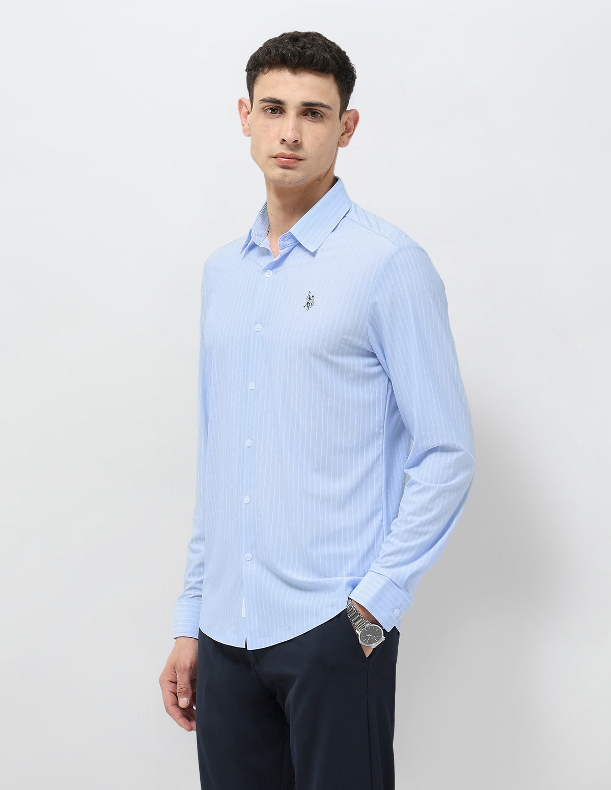 Story: This vertical-striped men's shirt delivers casual comfort with classic patterning, ideal for creating relaxed yet refined looks for everyday outings and occasions.