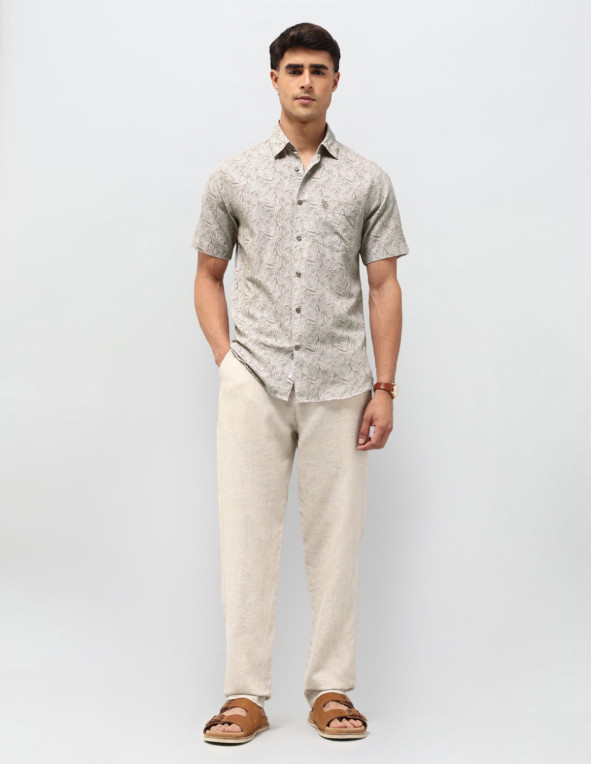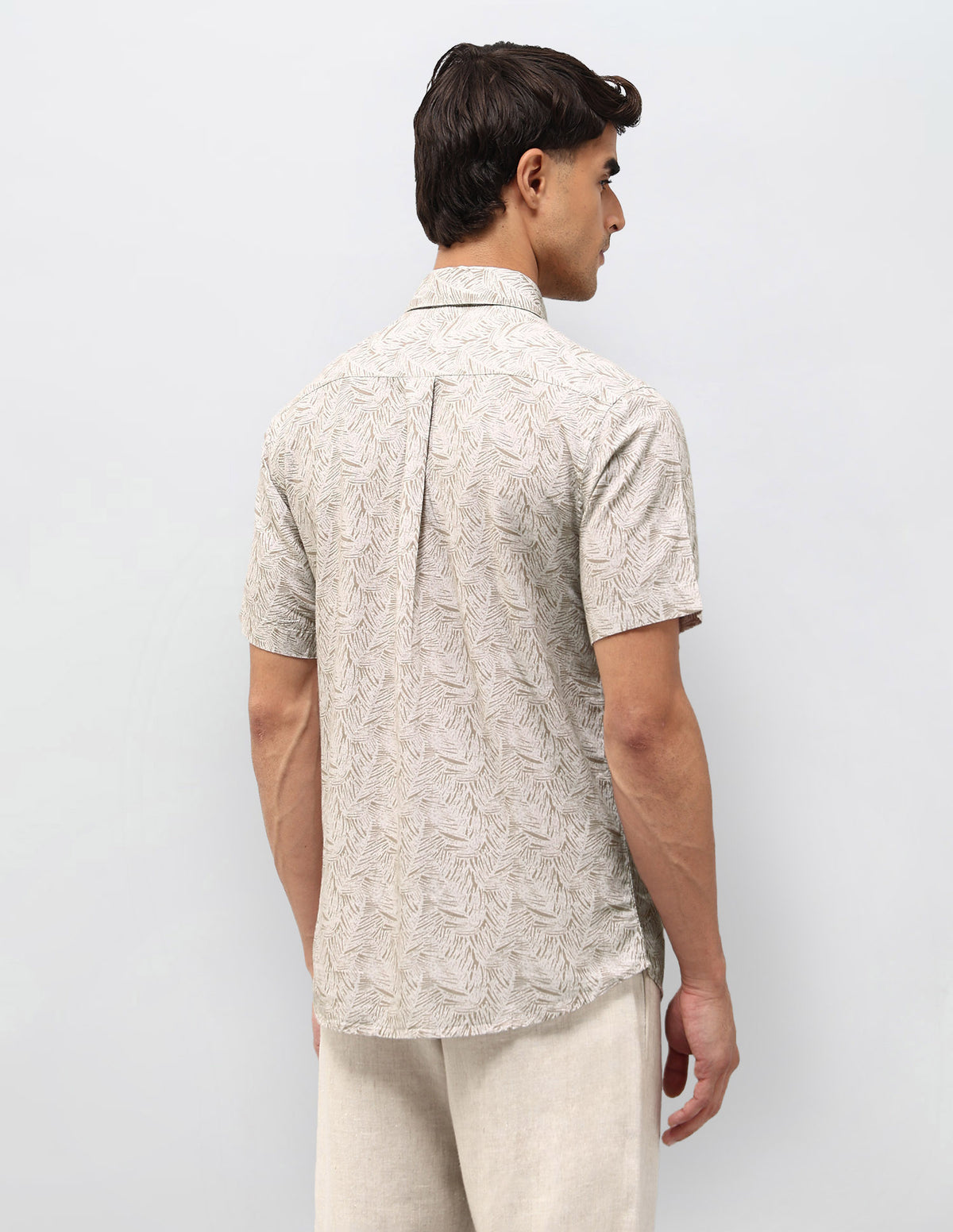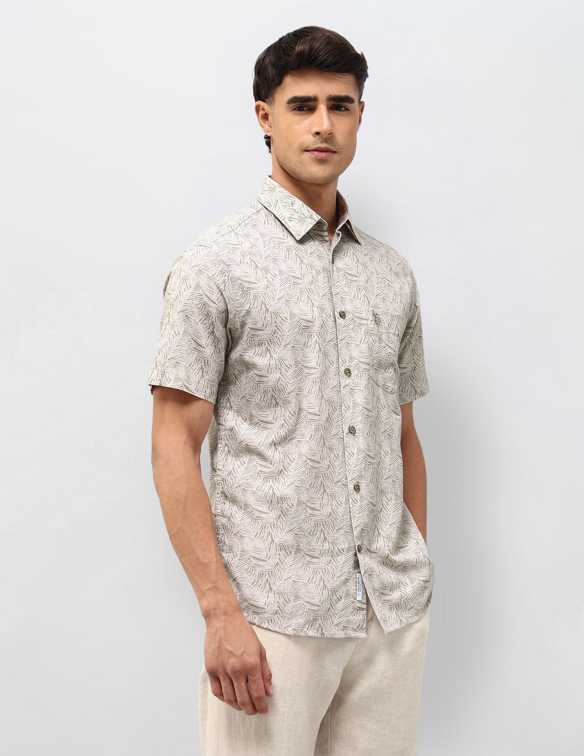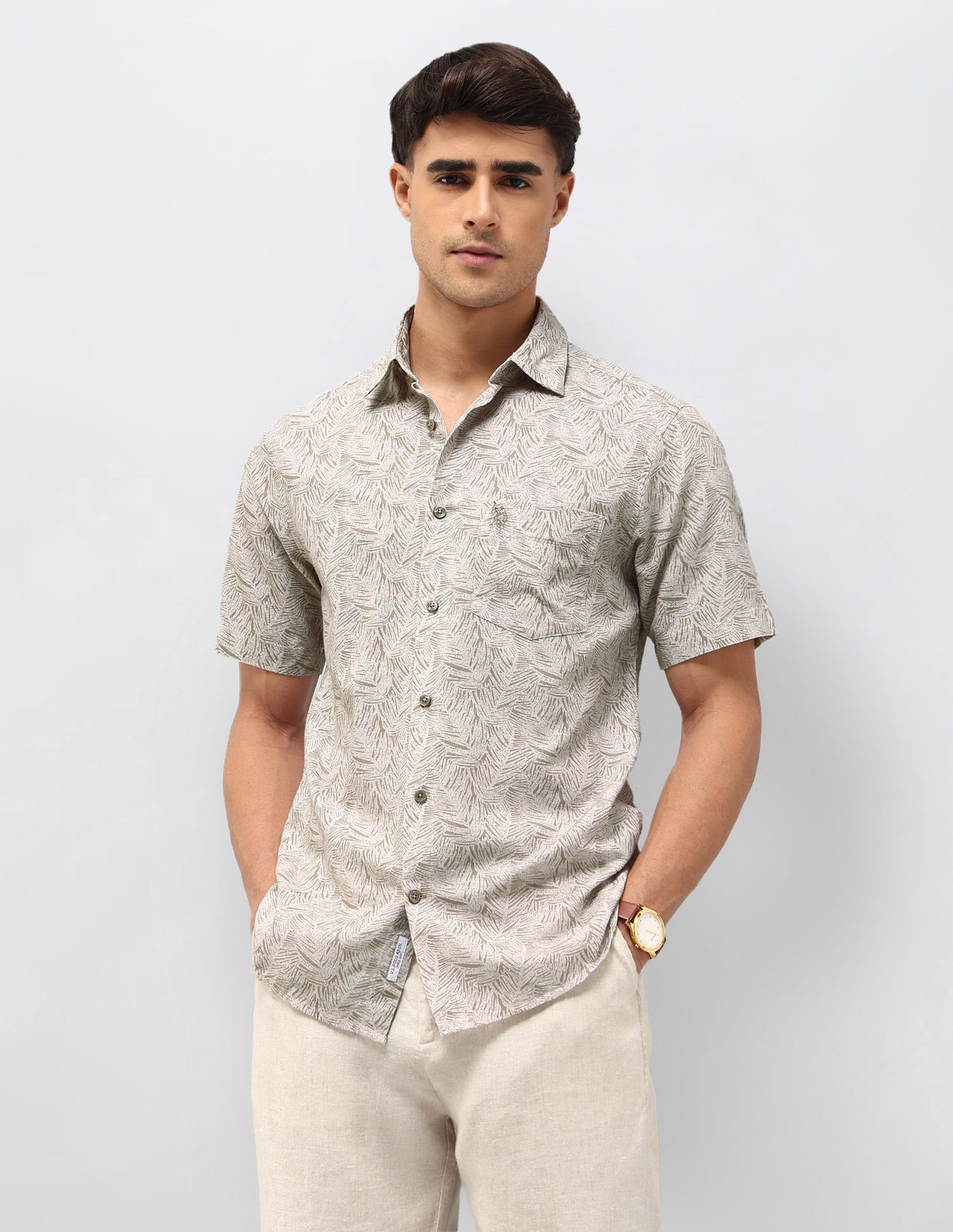 Story: This men's casual shirt showcases a vibrant leaf-print pattern, bringing a fresh and trendy look to your everyday wardrobe with effortless style.