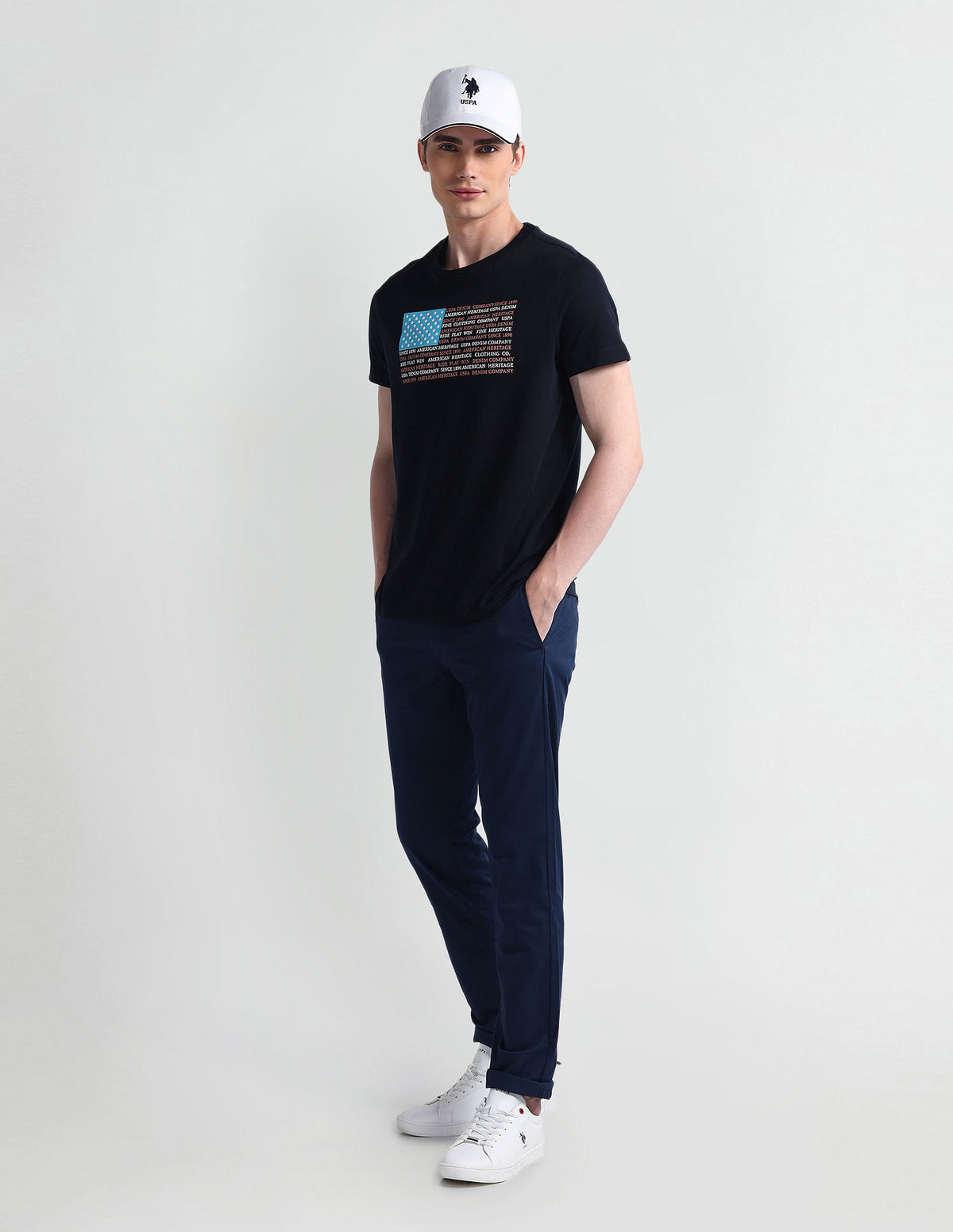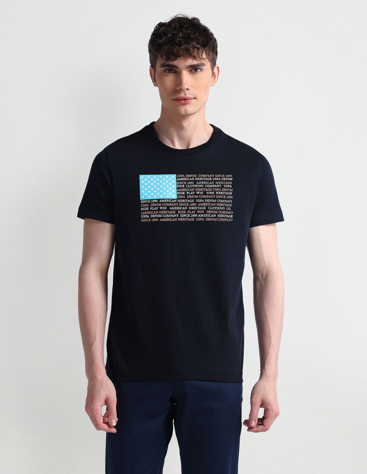 | Crew neck | Short sleeves | Straight hemline | Graphic printed pattern | Knitted | Muscle fit