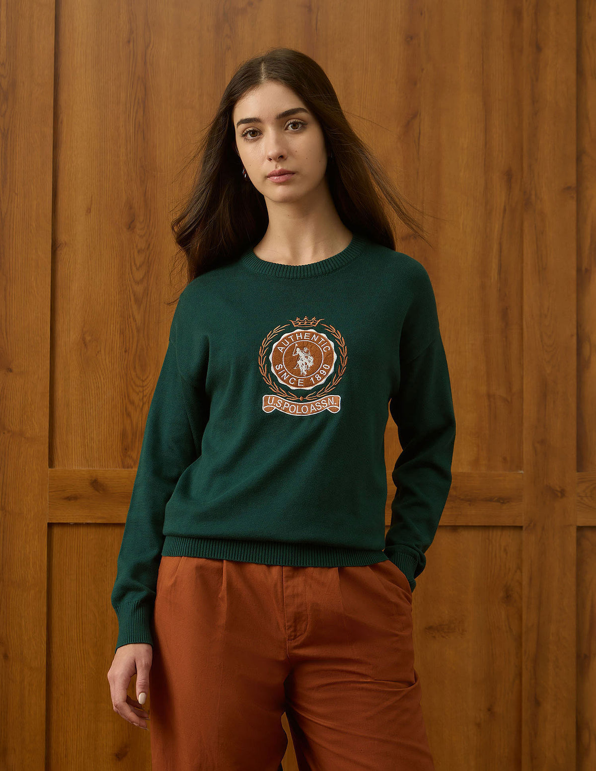 | Crew neck | Long sleeves | Ribbed neck, sleeve hems and hemline | Brand logo embroidered pattern | Knitted | Relaxed fit |