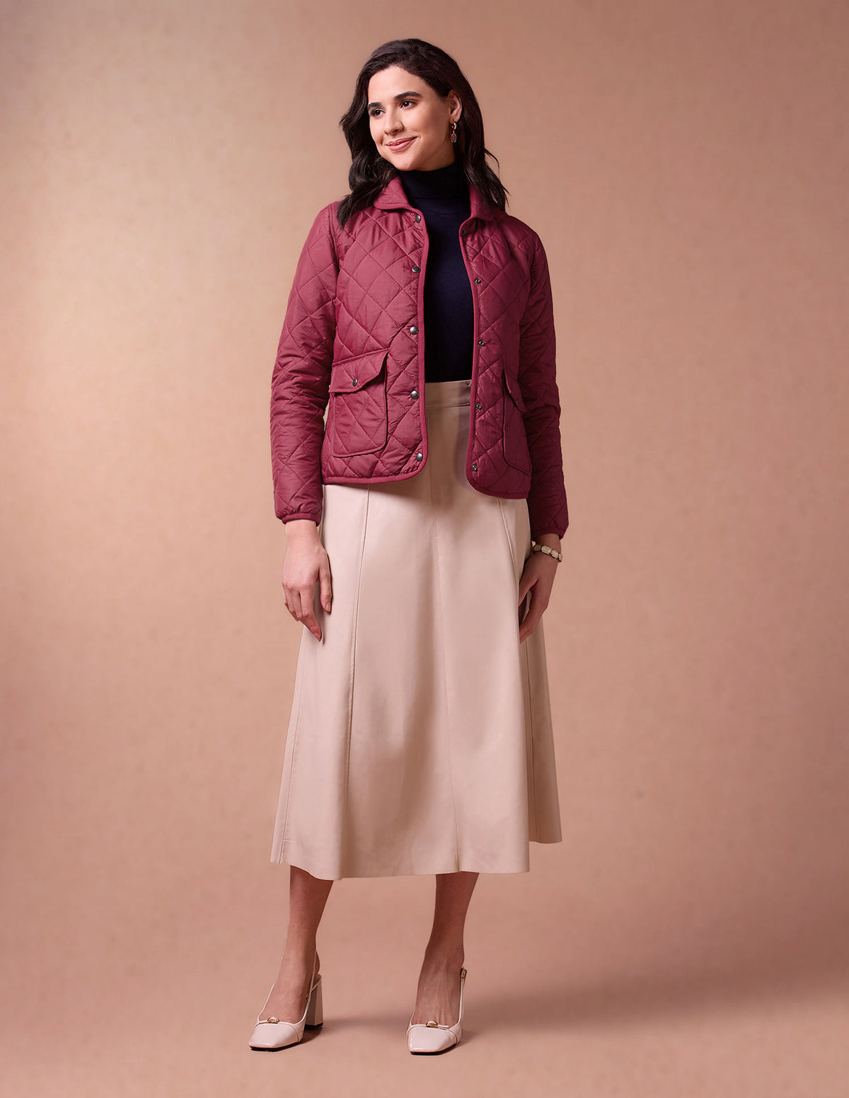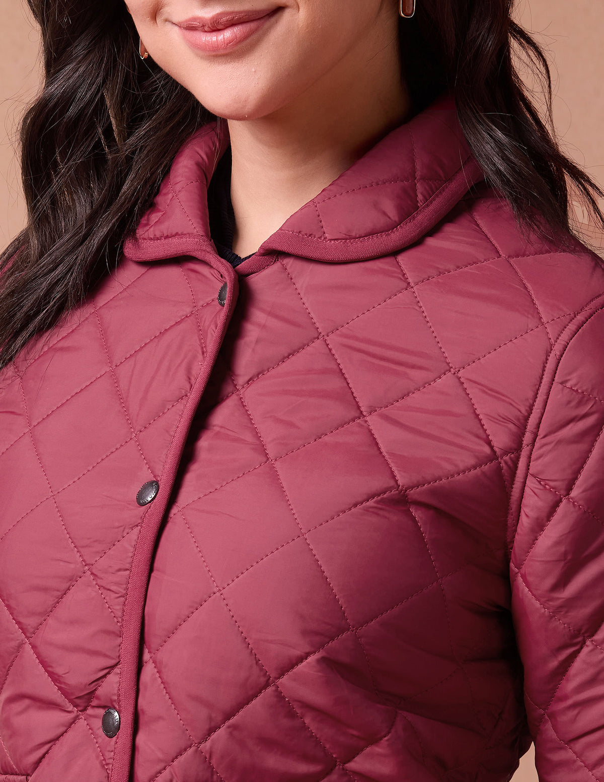 | Spread collar | Metallic logo at chest | Full button closure | Long sleeves | Straight hemline | Two pockets | Quilted construction | Solid pattern | Woven | Regular fit