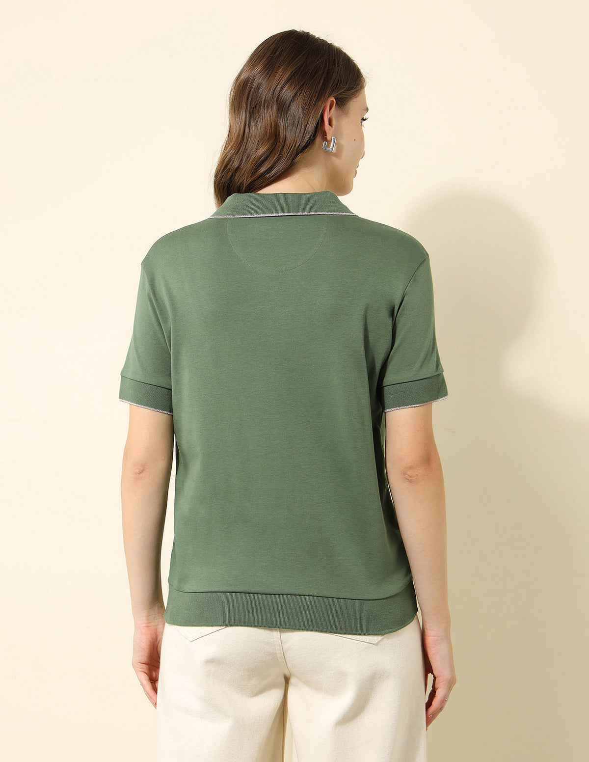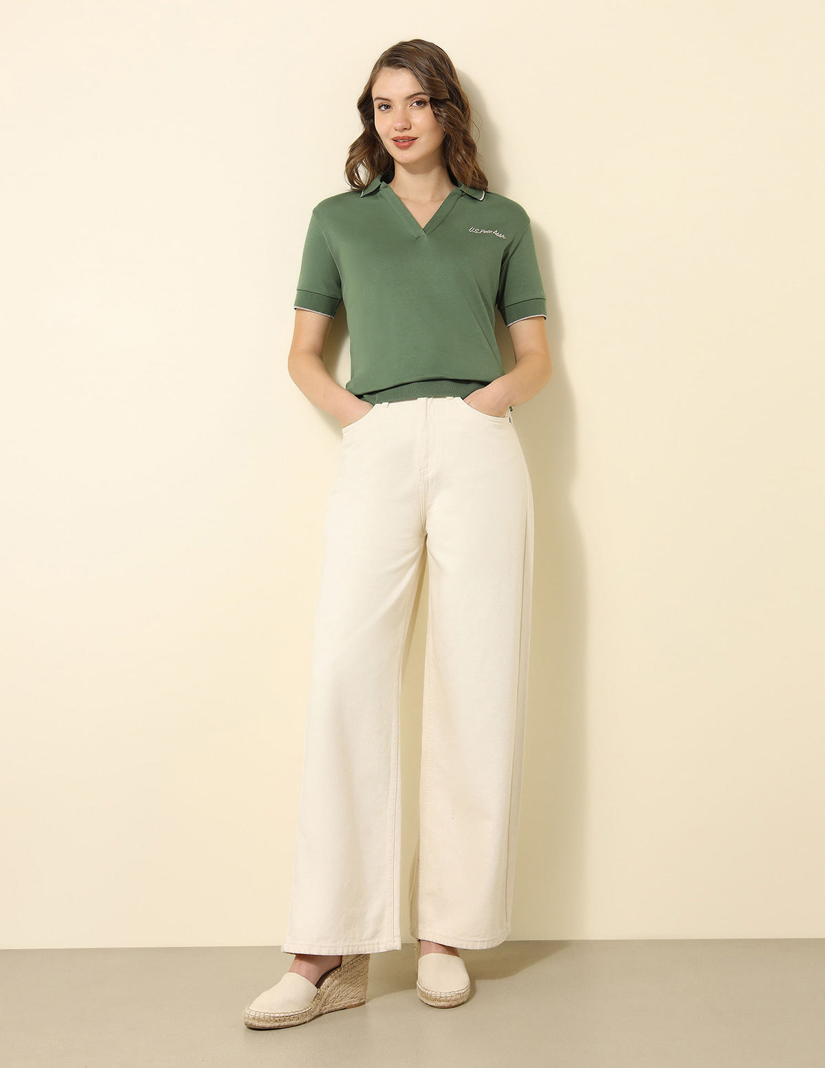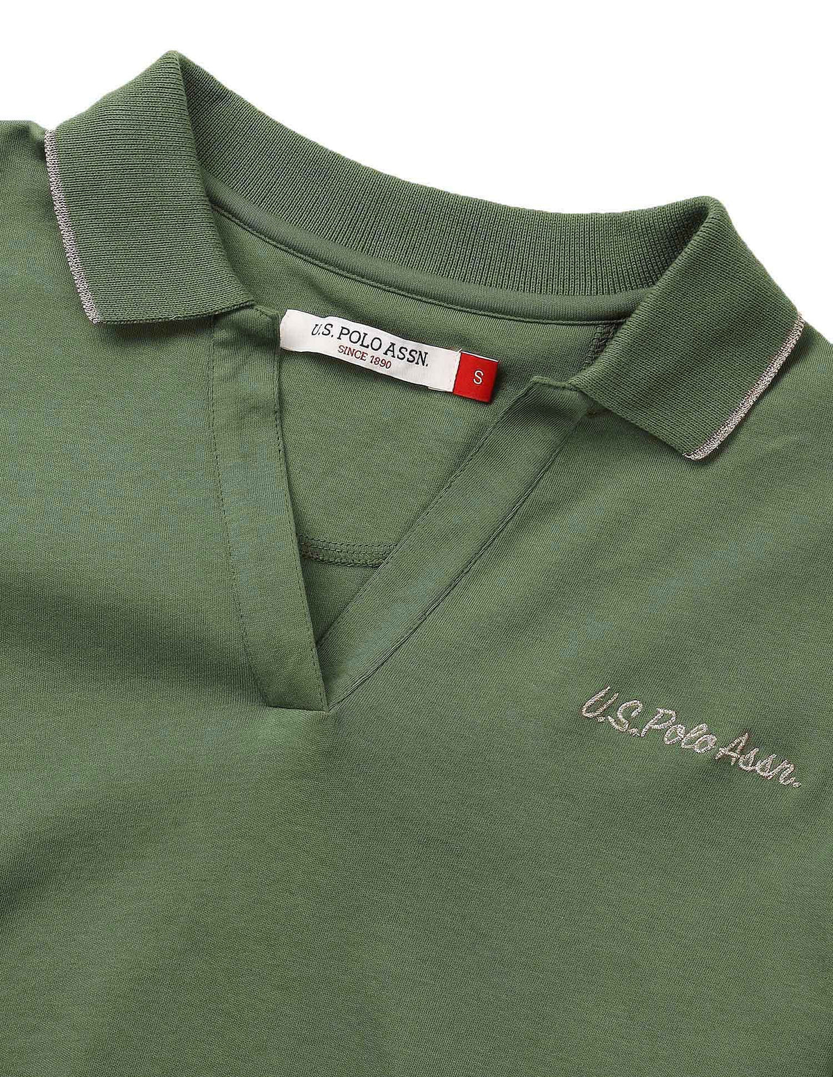 | Tipped polo collar | Open placket | Logo at chest | Short sleeves | Ribbed collar and sleeve hems | Ribbed hem | Solid pattern | Pique knit | Boxy fit |