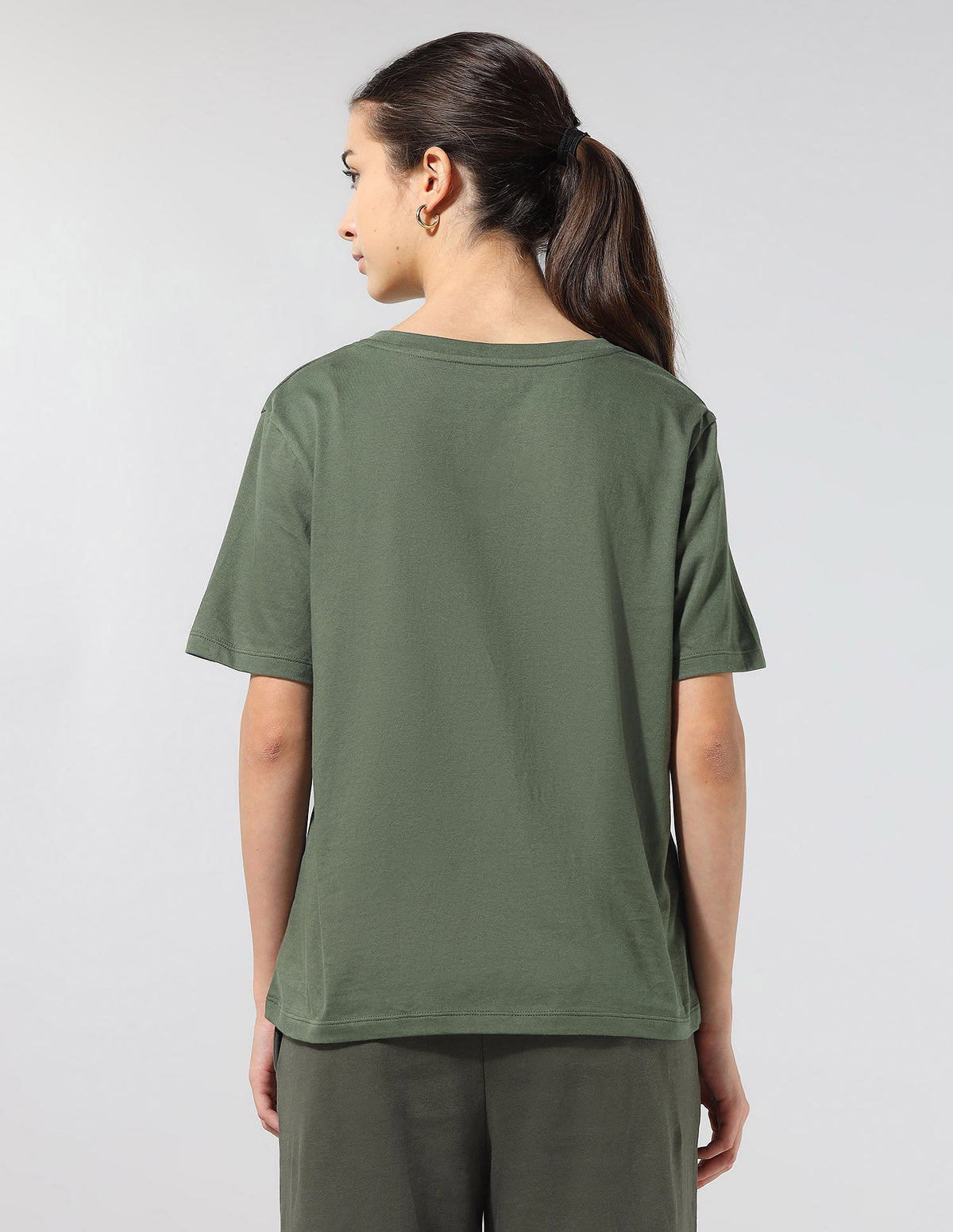 | V-neck | Embroidered logo at chest | Short sleeves | Straight hemline | Solid pattern | Knitted | Boxy fit |