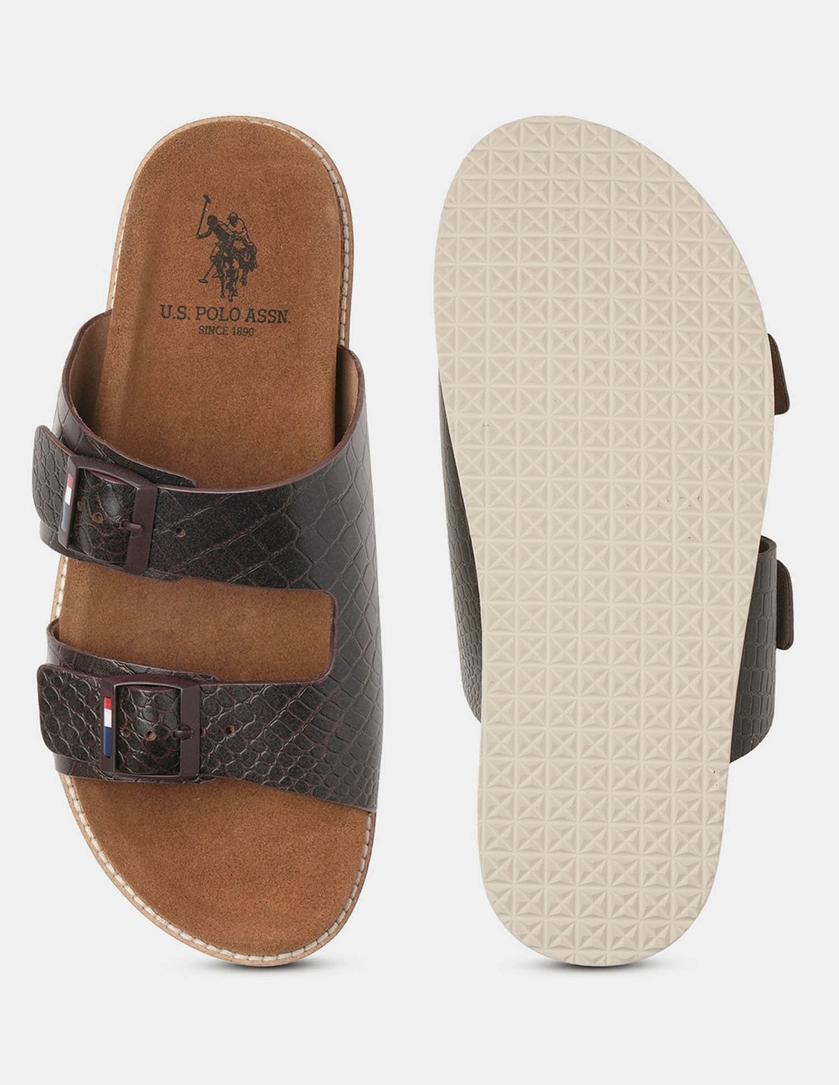 | Open toe | Double strap design with adjustable buckle | Cushioned footbed | Textured outsole |