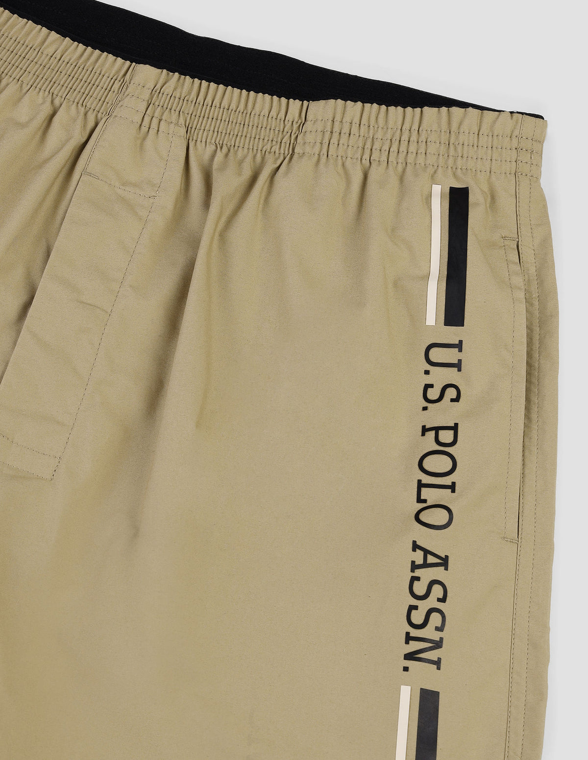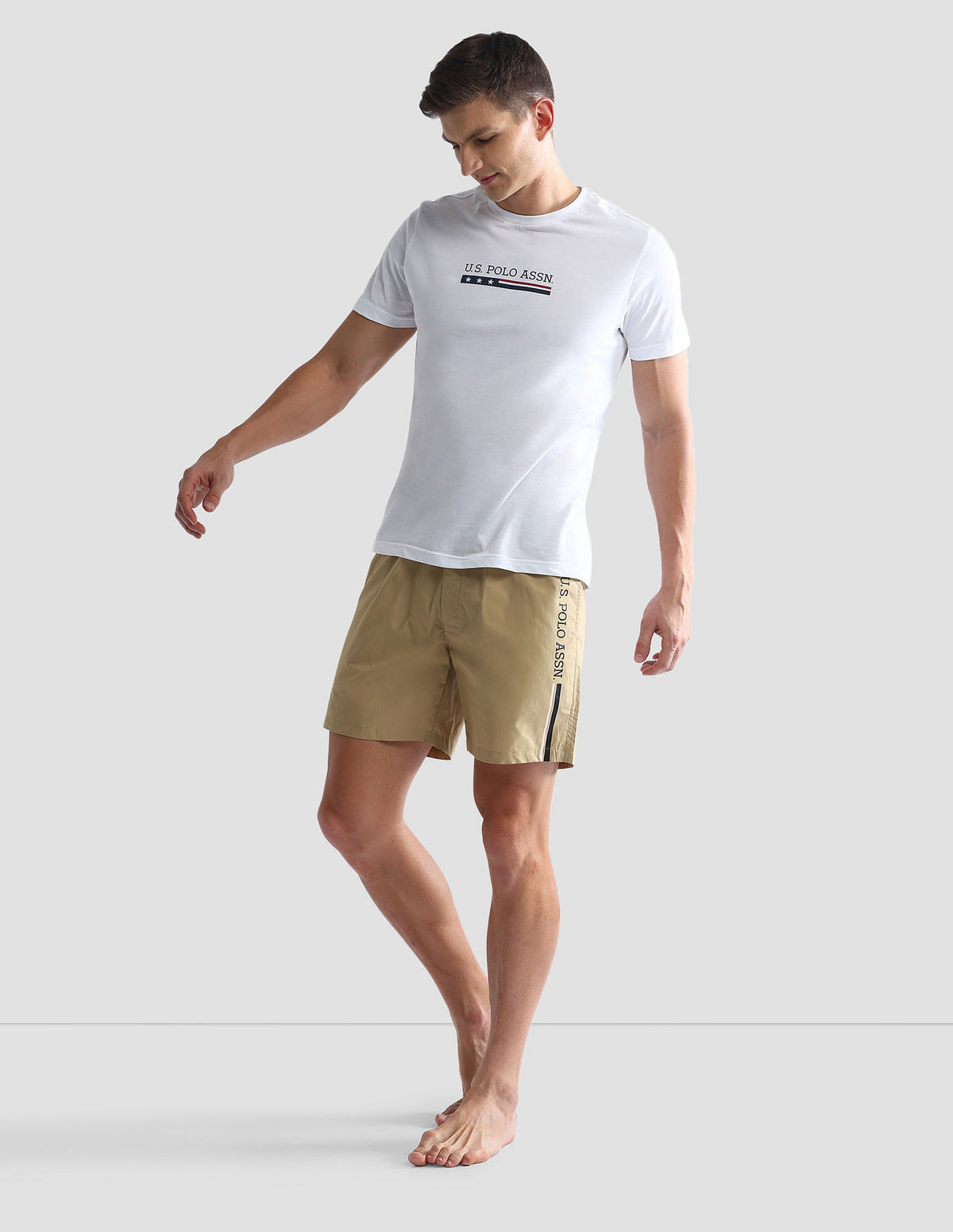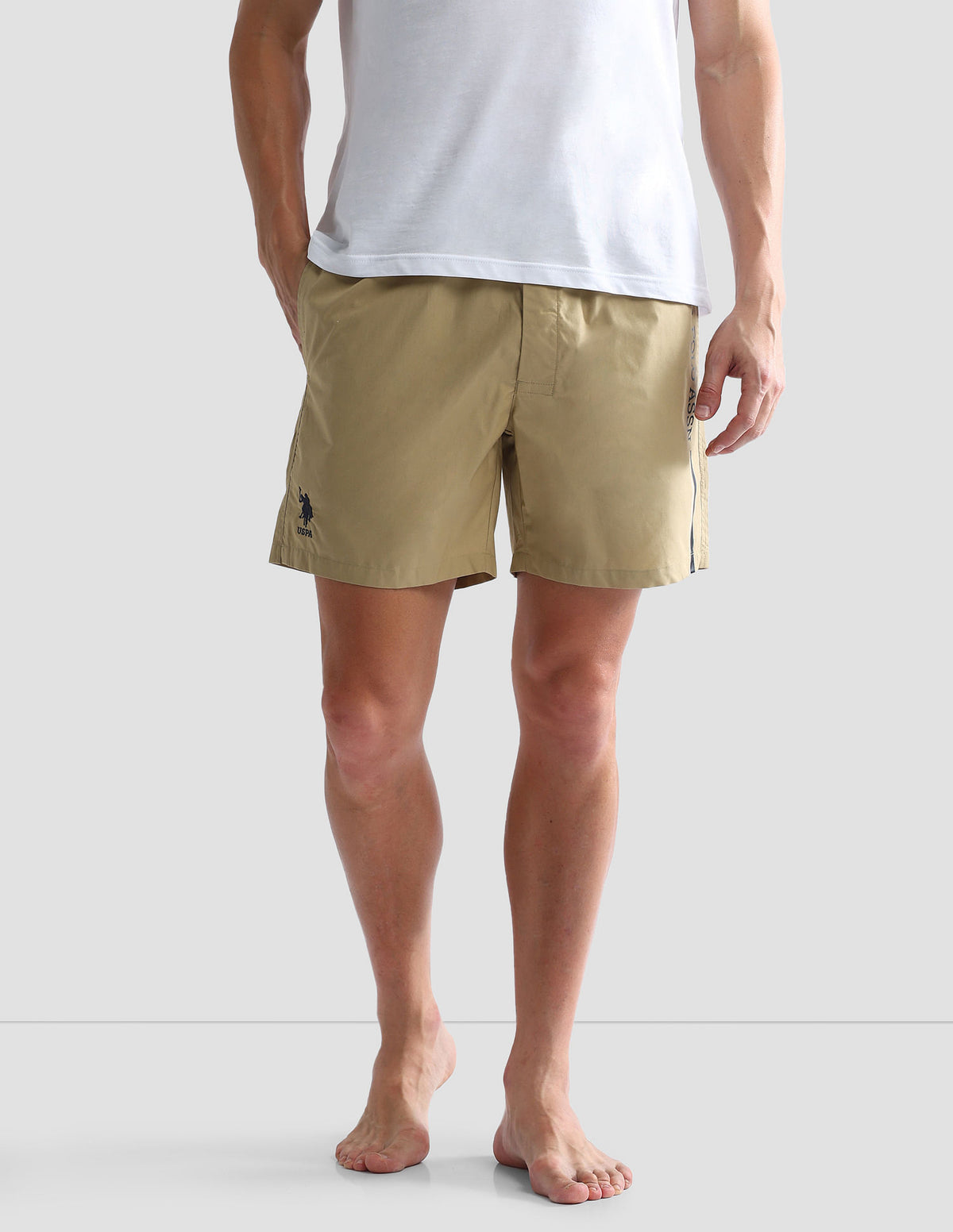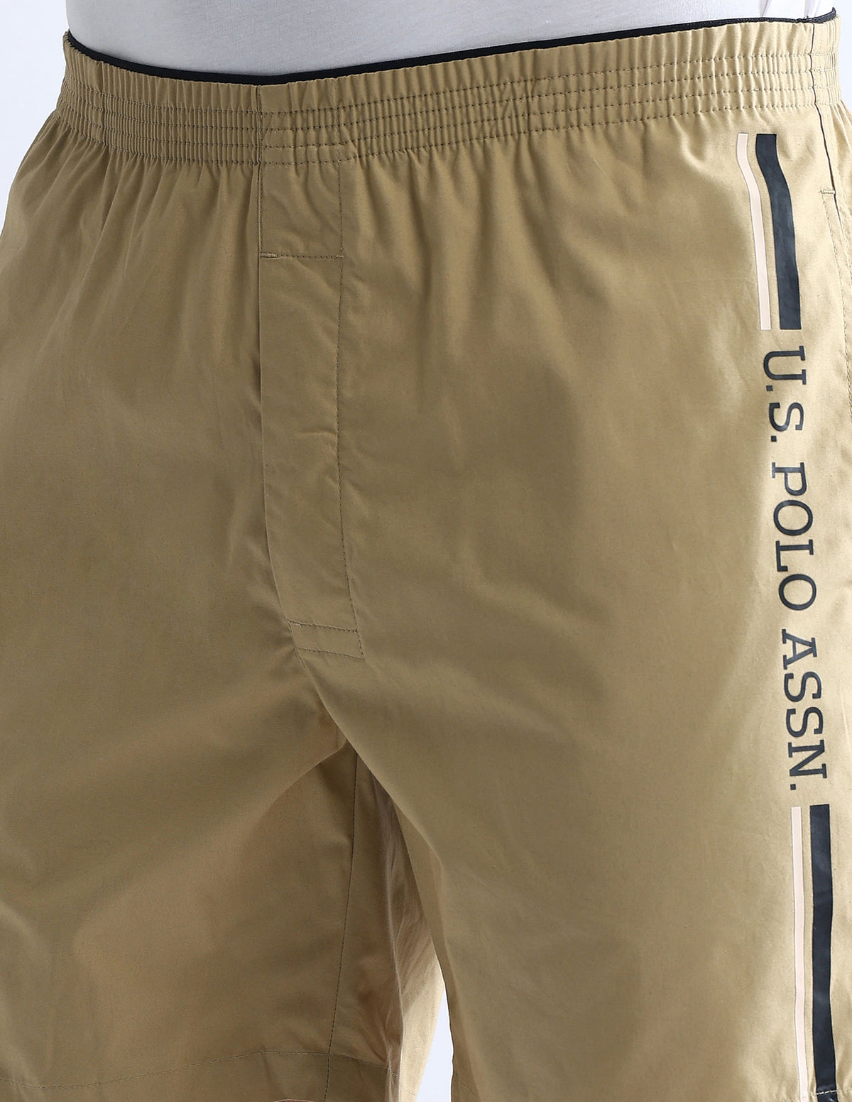 | Pack of 1: | Mid-rise waist sits comfortably at your waist | Soft stretch elasticized waistband | Dual side pockets to store your essentials | Crafted from versatile, soft and durable pure cotton fabric for all-purpose | Solid pattern with USPA logo on left leg | construction ensures the material is lightweight and stretchable | Regular fit that falls just above the knee | Country Of Origin - India