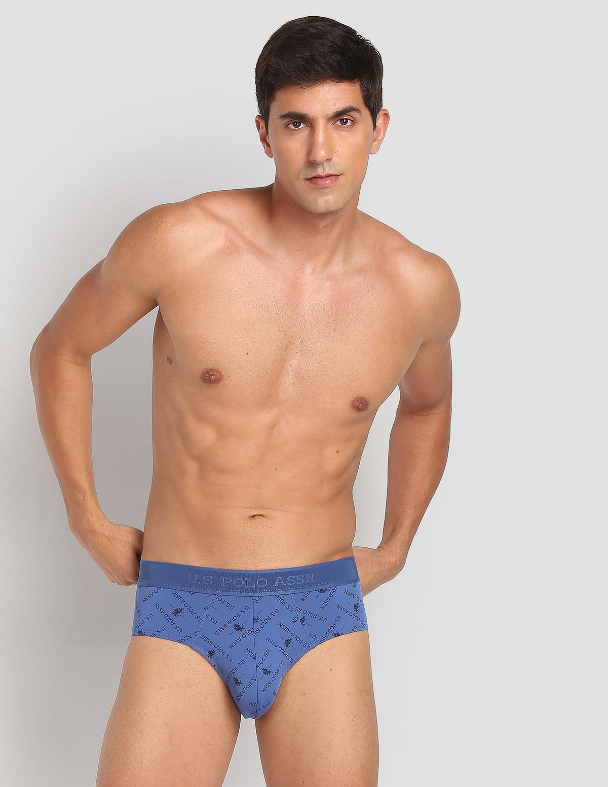 Story: These all-over printed briefs from the Active collection are made from a fine nylon blend and sit comfortably on your waist with an ultra-soft elastic waistband.