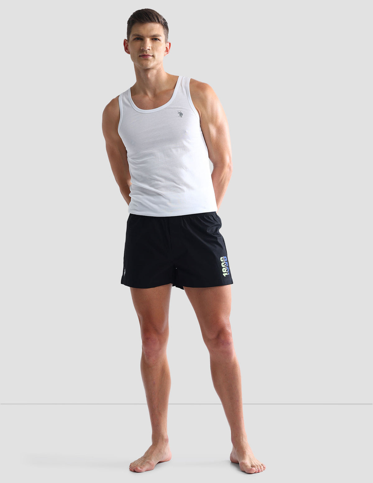| Pack of 1: | Mid-rise sits comfortably at your waist | Elasticized waistband for better grip | Functional fly with button closure that makes it easy to slip in and out | Patch pocket at the back to store your essentials | Short length that can be worn with your pants on | Pure cotton construction makes it lightweight, highly absorbent and breathable | Solid pattern with placement graphic print makes a unique addition to lounge | The woven construction is less prone to wrinkles and creases | Country Of Origin - India