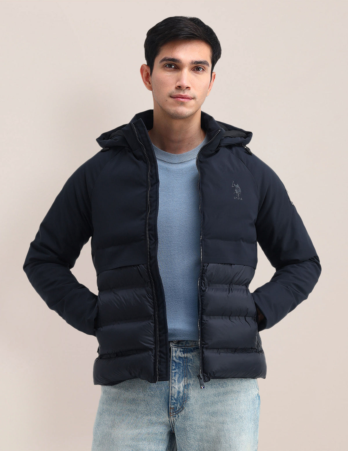 | Hooded | Full zipper closure | Long sleeves | Regular sleeve hems and hemline | Two pockets | Puffer jacket | Solid pattern |