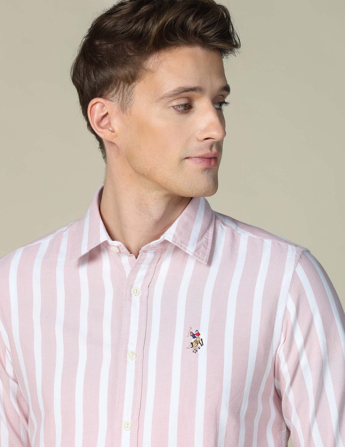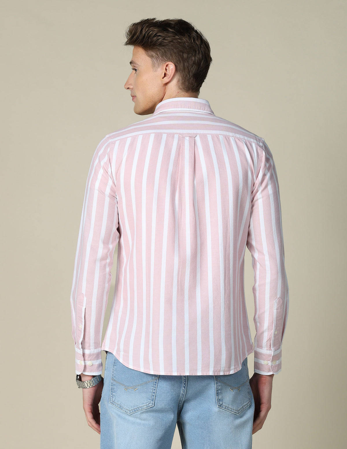Story: This men's vertical-striped casual shirt offers refined pattern detail and timeless appeal, perfect for relaxed outings with a polished touch.
