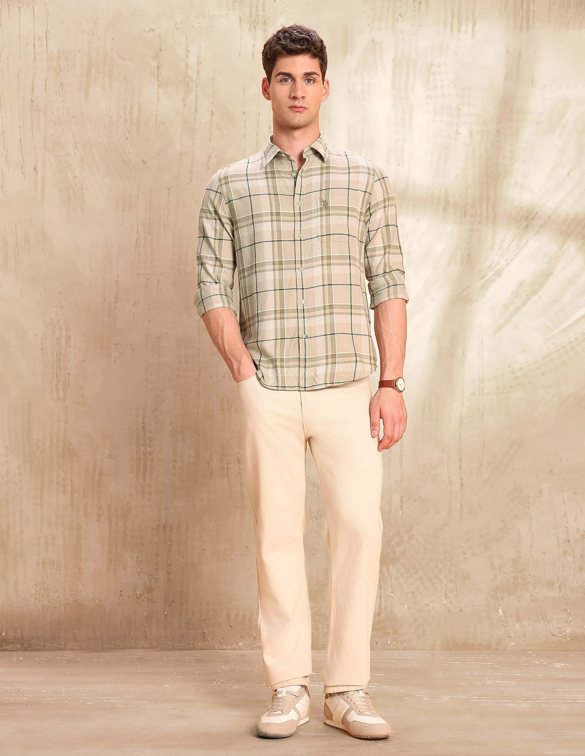 Story: This checked shirt is perfect for men's casual wear, offering a classic pattern that brings timeless appeal to any relaxed wardrobe.