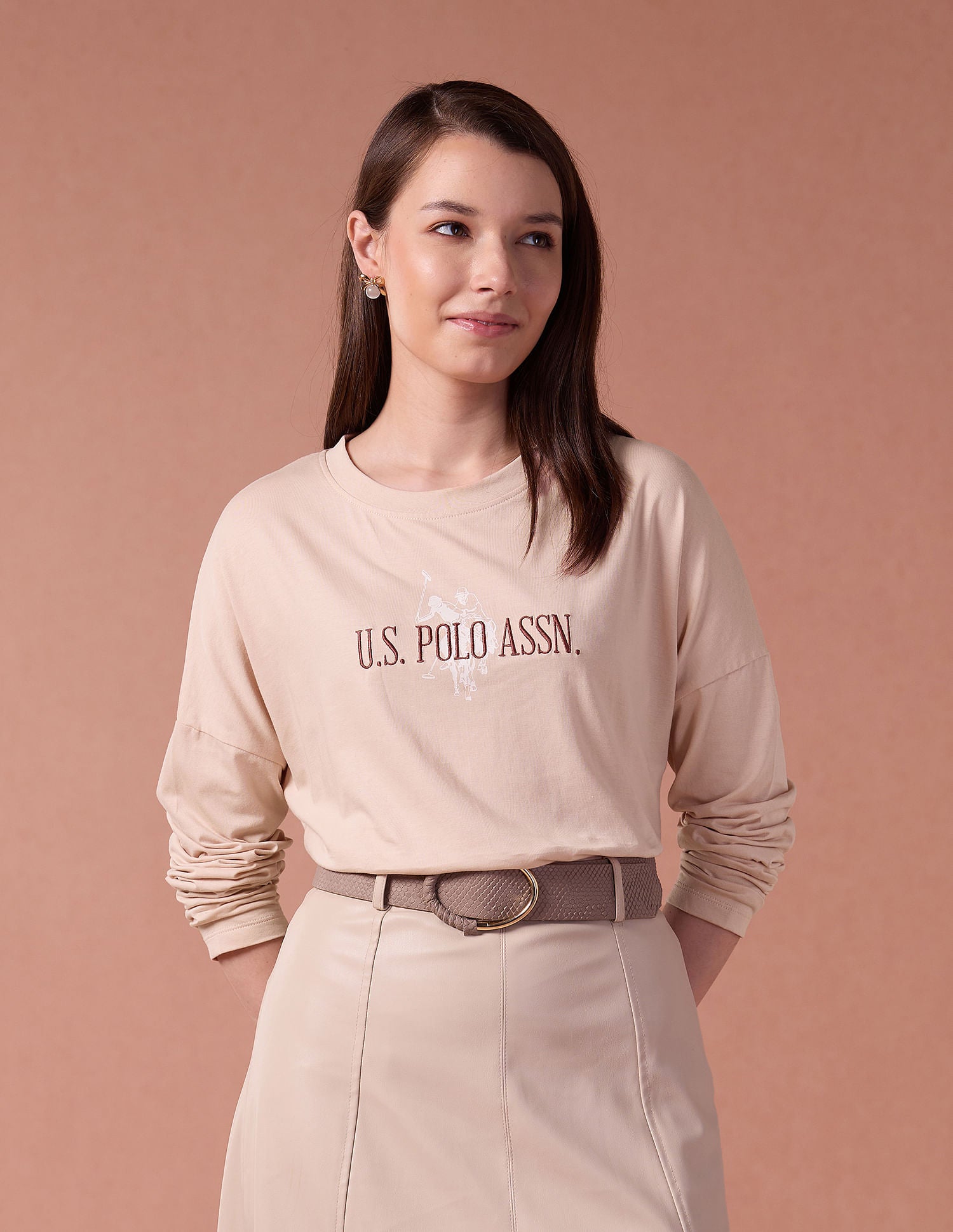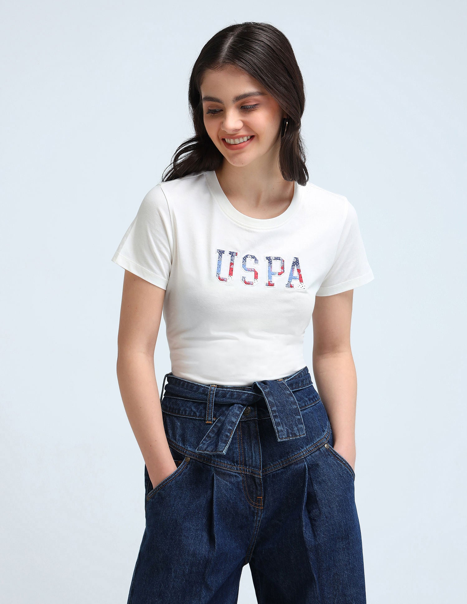 Satin Sticker Print Cotton T-Shirt
