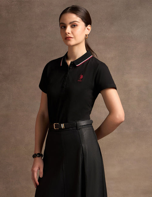 Embroidered Logo Tipped Polo Shirt