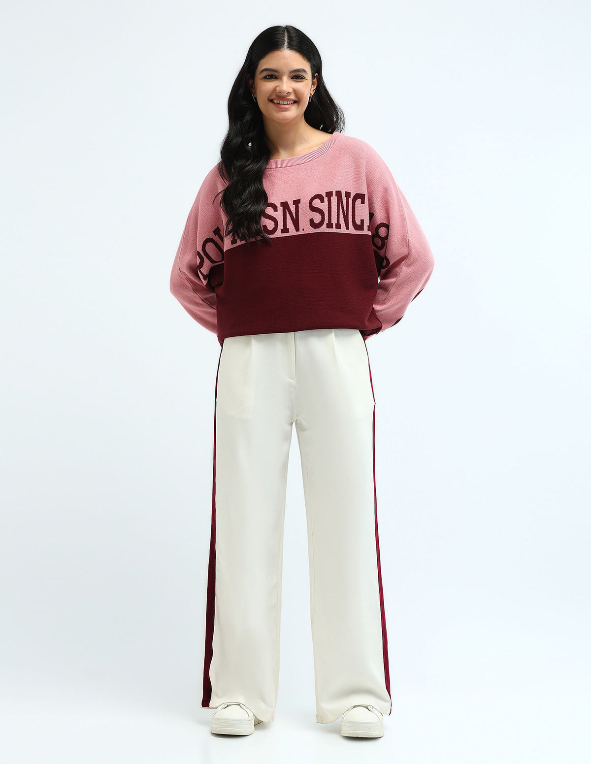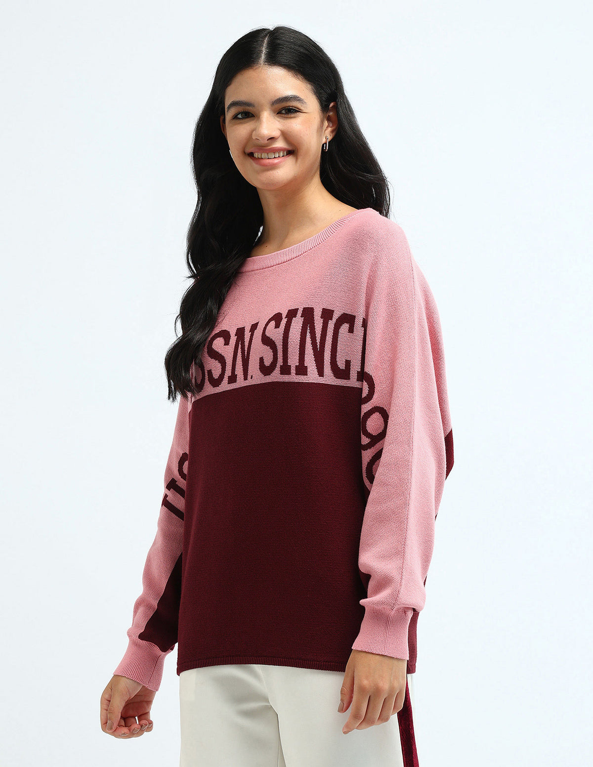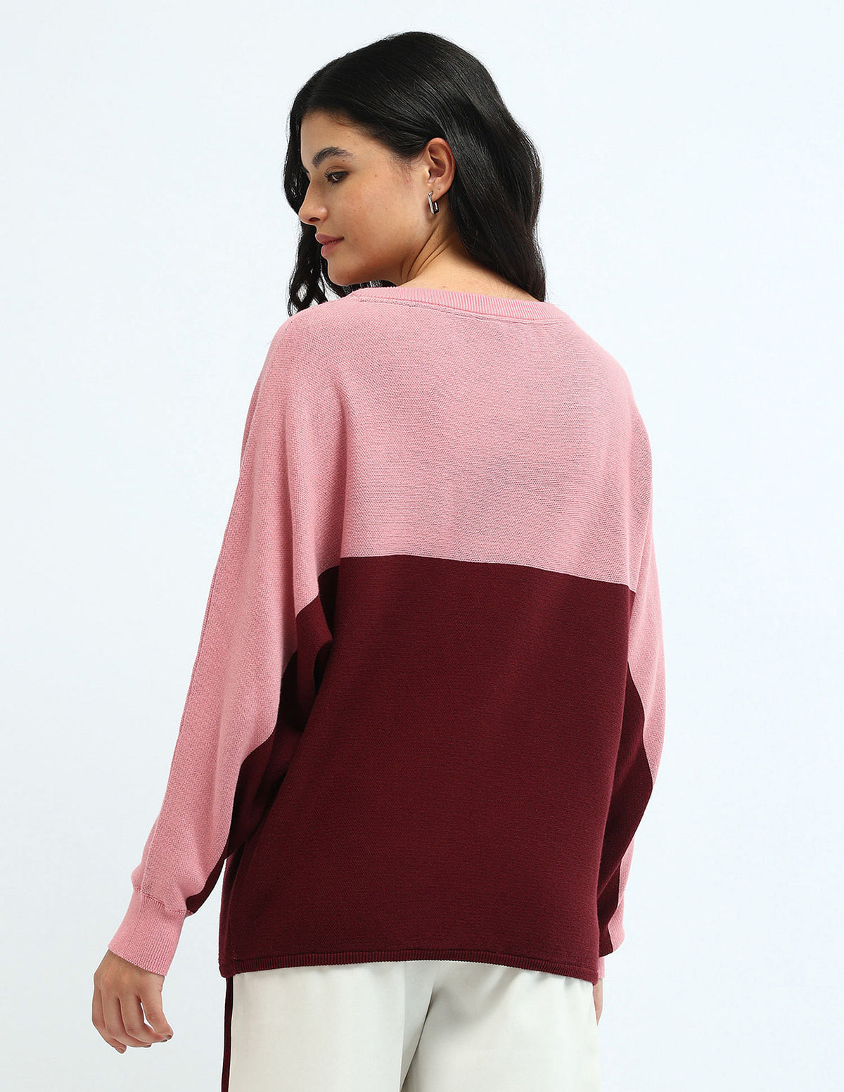 | Crew neck | Long raglan sleeves | Ribbed neck, sleeve hems and hemline | Colourblocked pattern | Knitted | Regular fit |