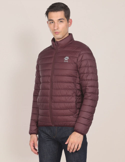 High Neck Nylon Solid Puffer Jacket