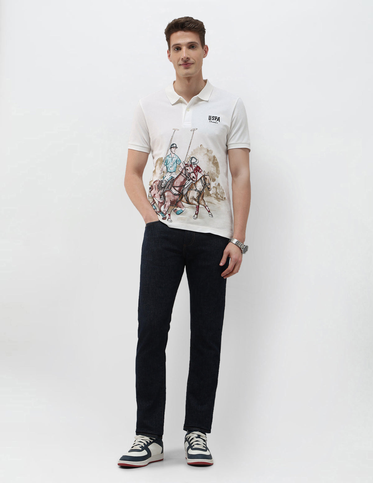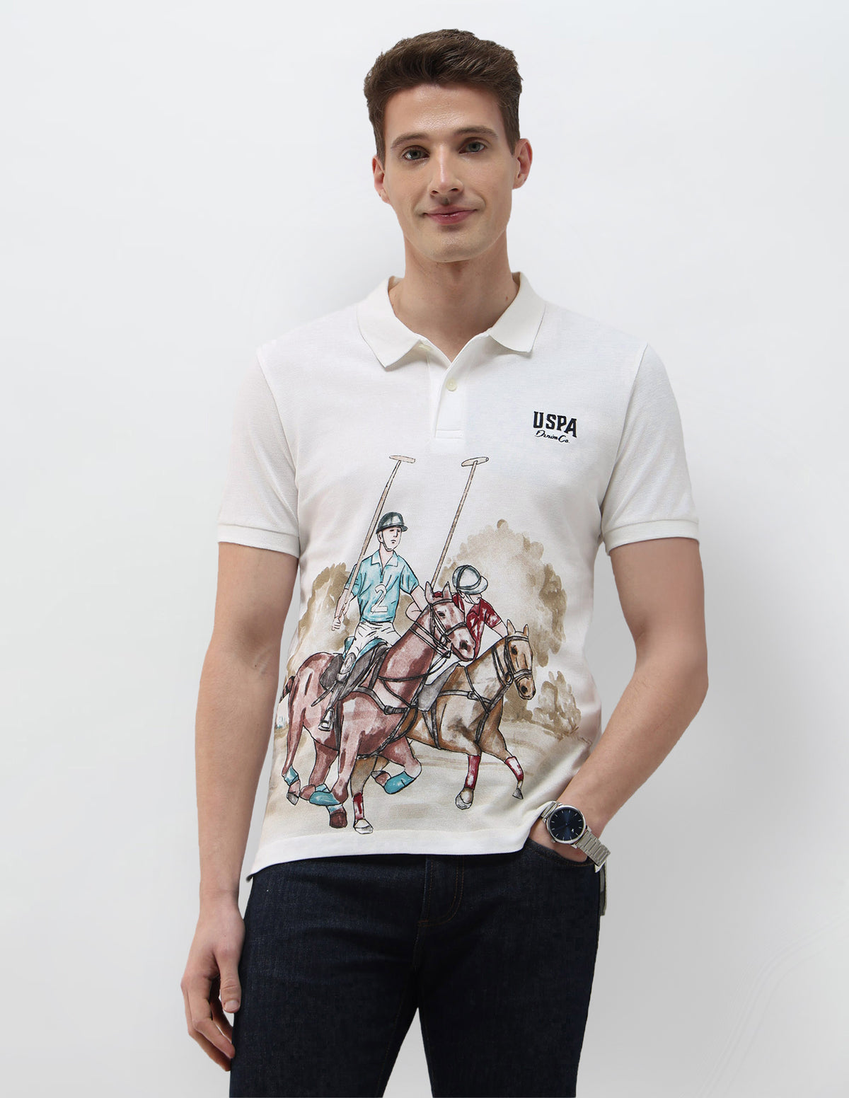 Story: This men's polo T-shirt from the Summer House collection showcases a logo pattern, delivering casual comfort and effortless style for warm-weather occasions.