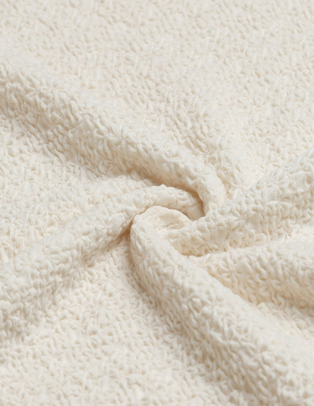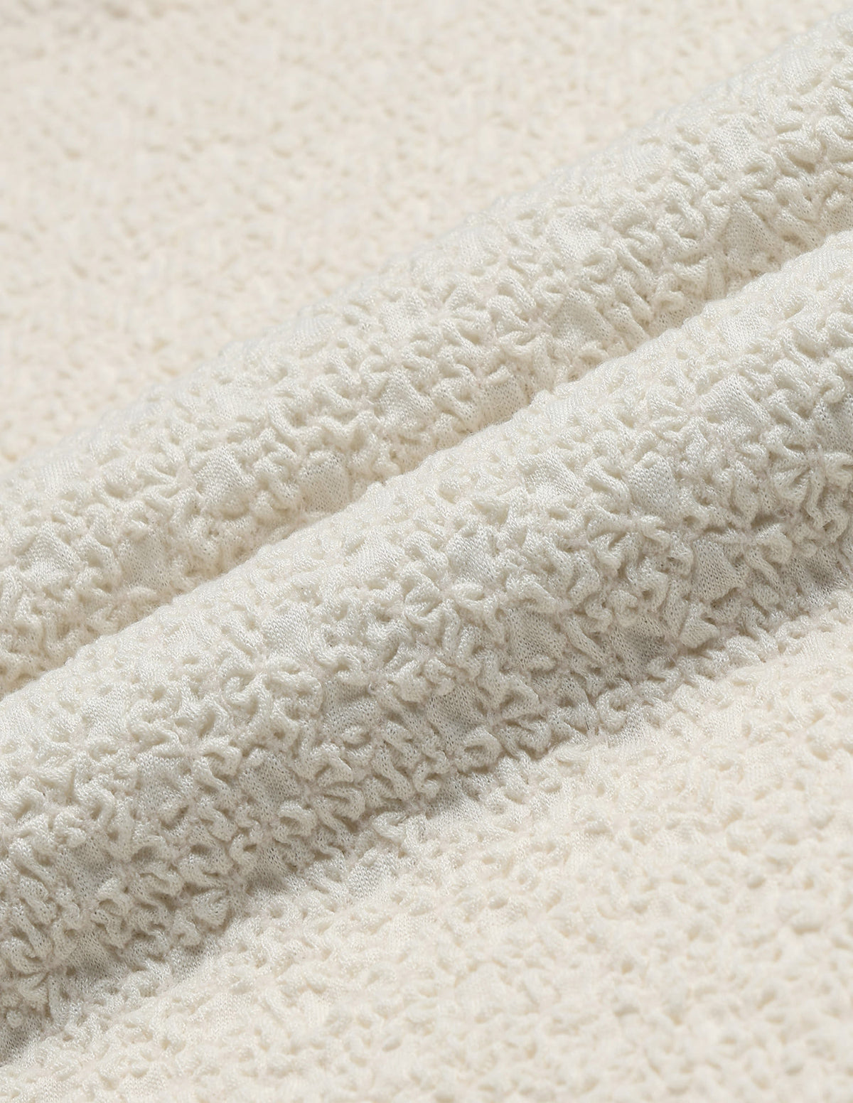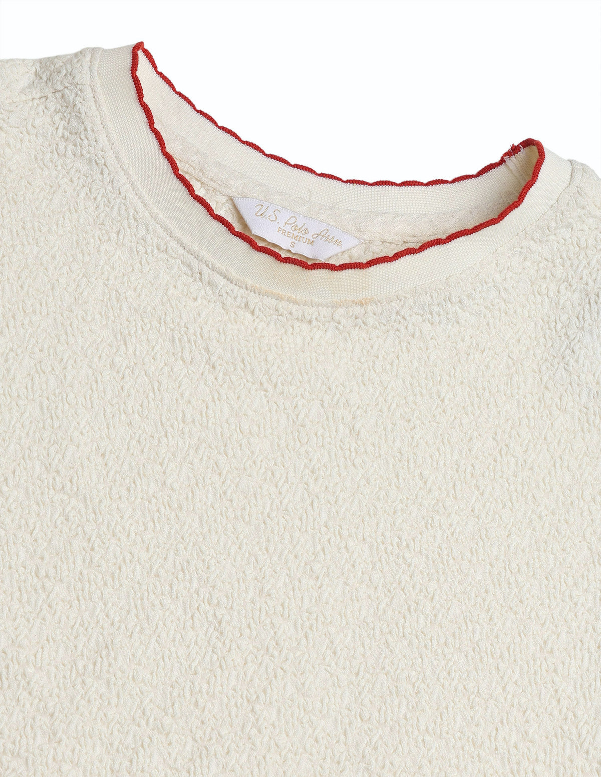 | Ribbed crew neck | Short sleeves | Straight hemline | Textured pattern | Knitted | Fitted |