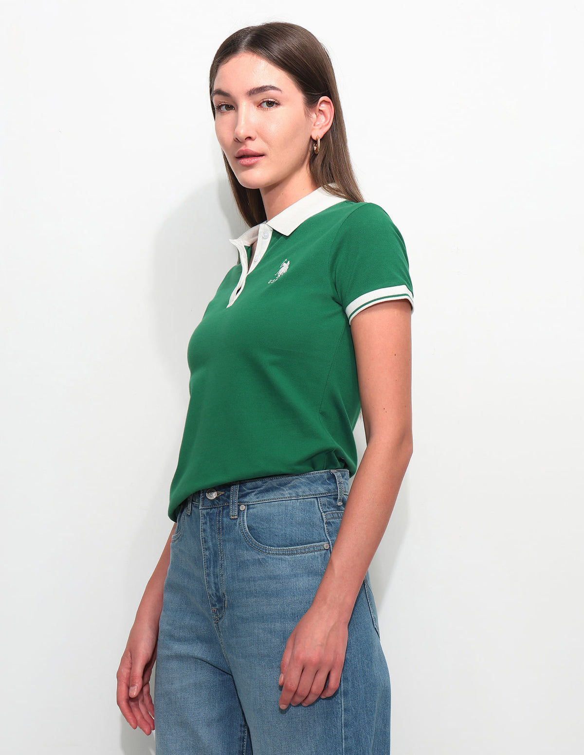 | Polo collar | Short button placket | Short sleeves | Ribbed collar and sleeve hems | Uneven vented hem | Solid pattern | Pique knit | Regular fit |