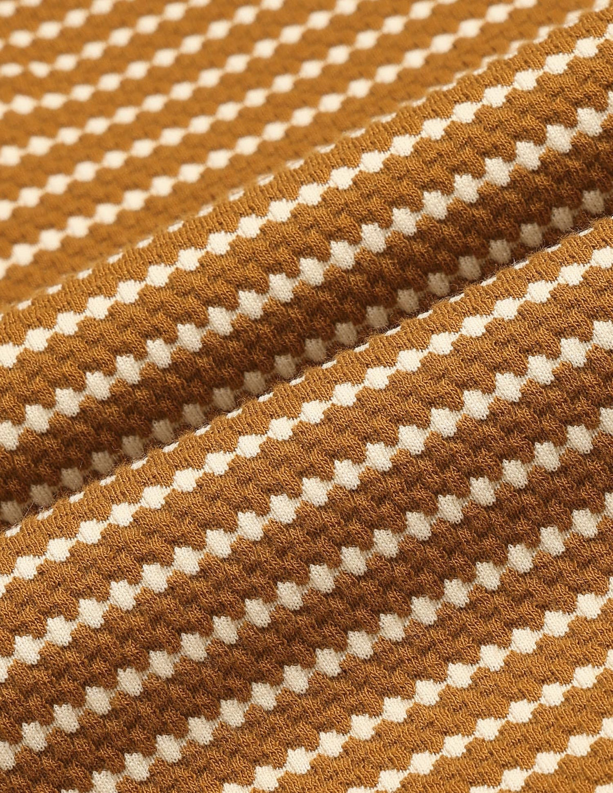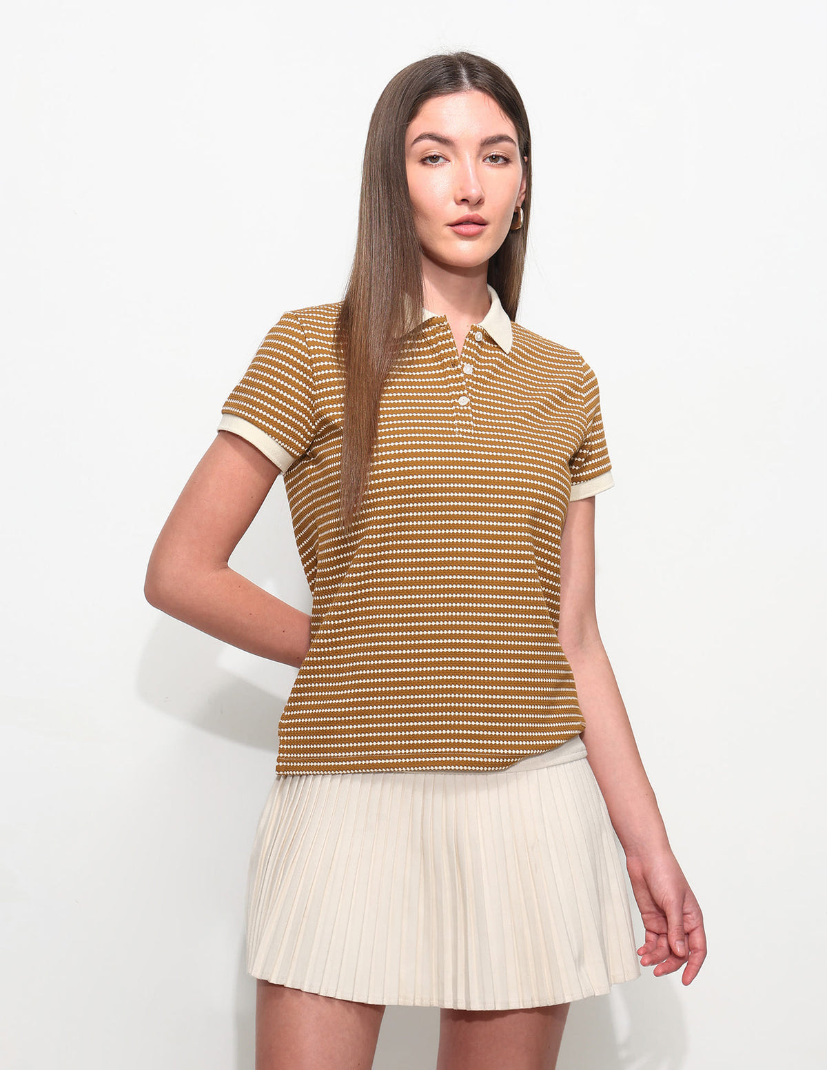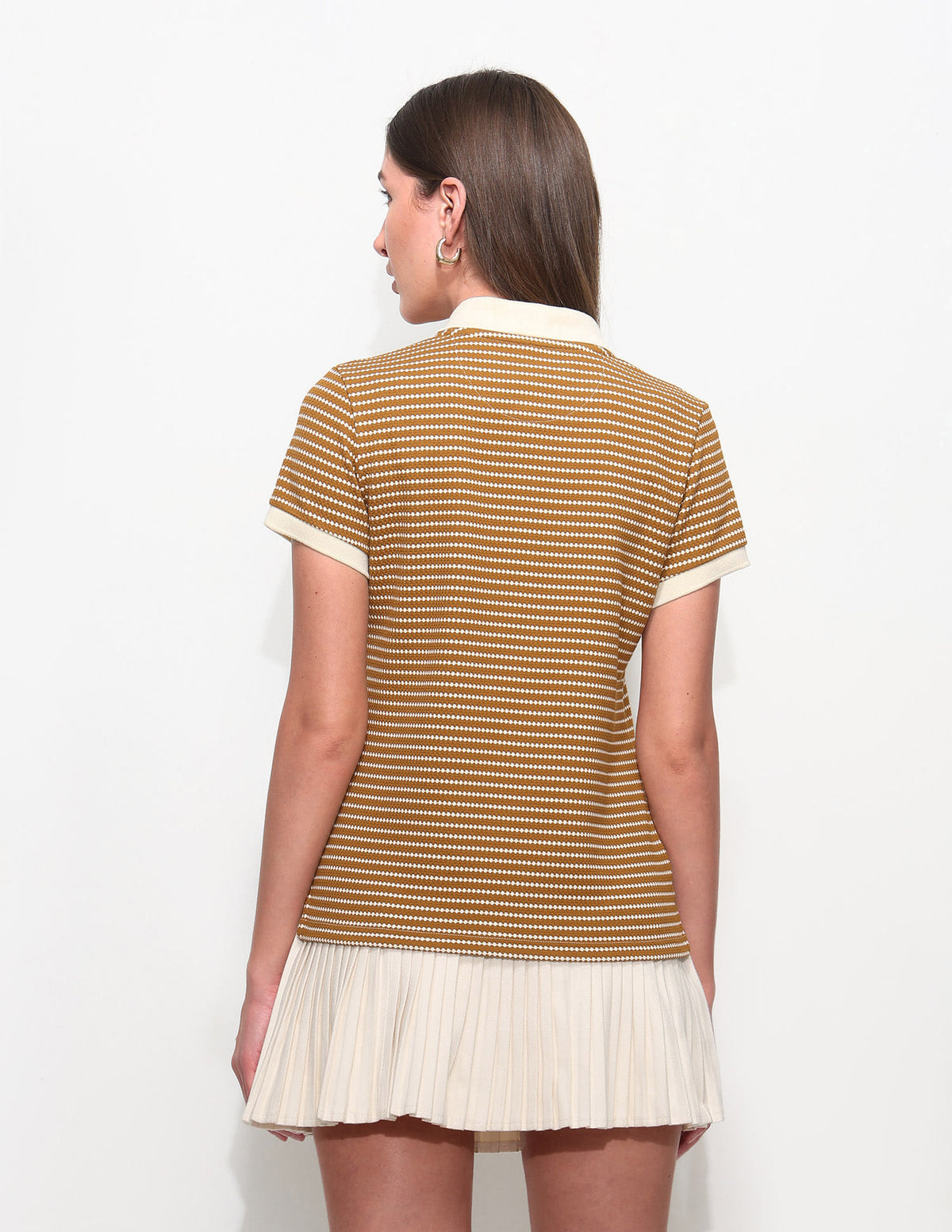 | Polo collar | Short button placket | Short sleeves | Ribbed collar and sleeve hems | Uneven vented hem | Textured pattern | Pique knit | Regular fit |