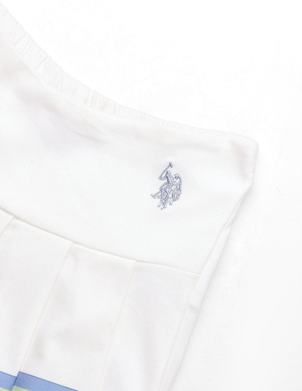 | Mid-rise waist | Elastised waistband | Horizontal striped pattern | Ribbed knit |