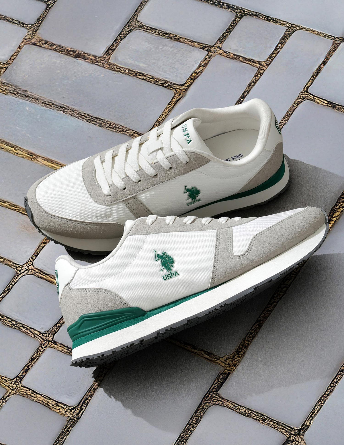| Round toe | Central lacing | Panelled upper with logo | Padded top line | Reinforced heel counter | Cushioned insole | Textured outsole | Colourblocked pattern |