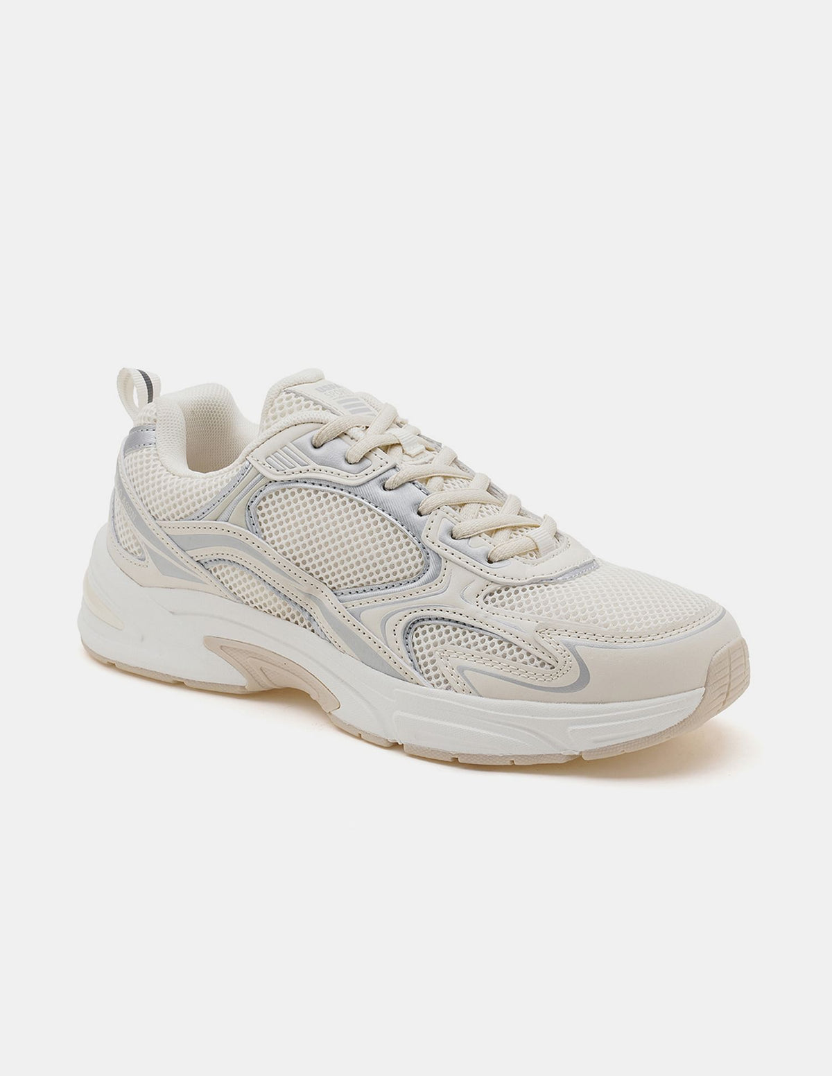 | Round toe | Central lacing | Panelled upper with logo | Padded top line | Reinforced heel counter | Cushioned insole | Textured outsole | Colourblocked pattern |