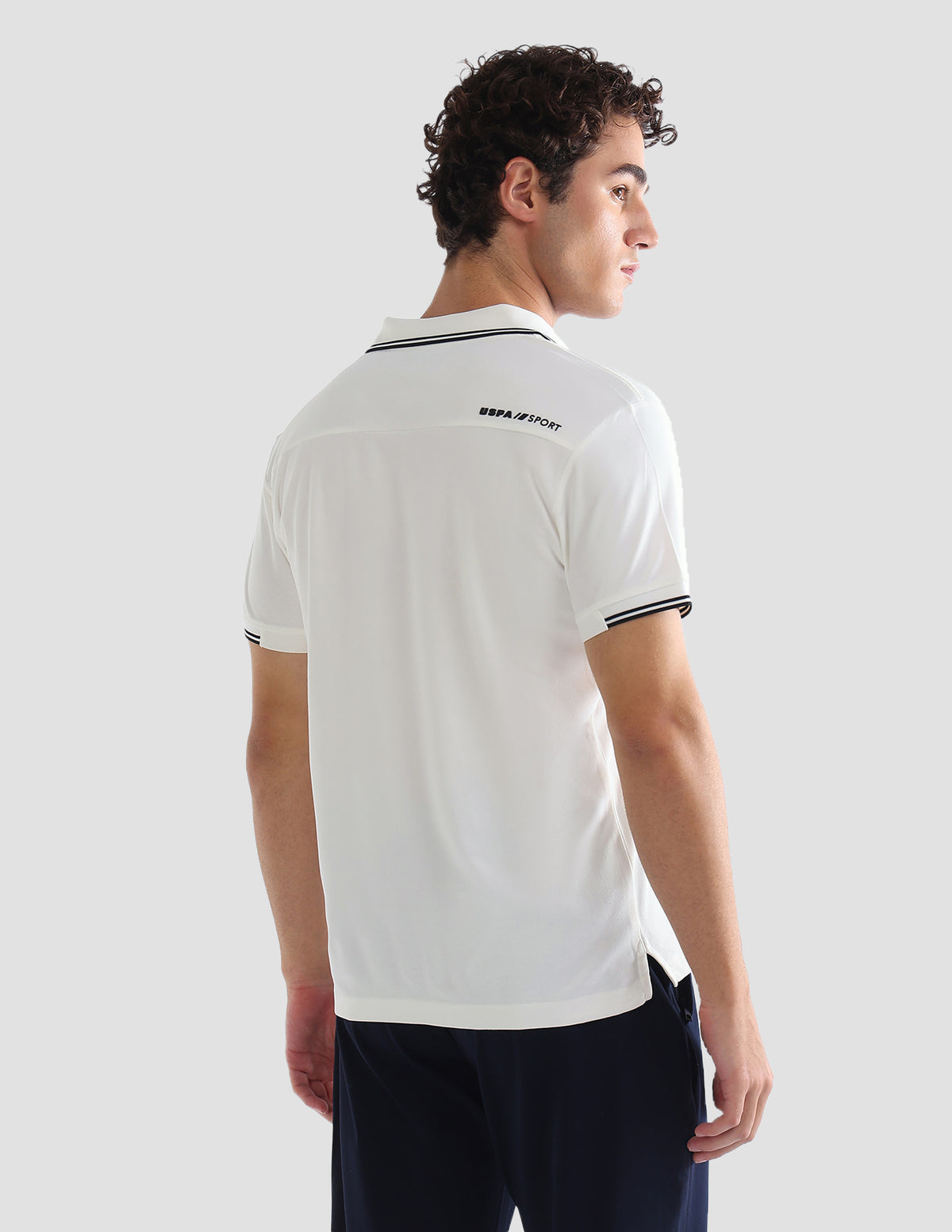 Solid Stripe Detail Slim Fit Active Polo Shirt