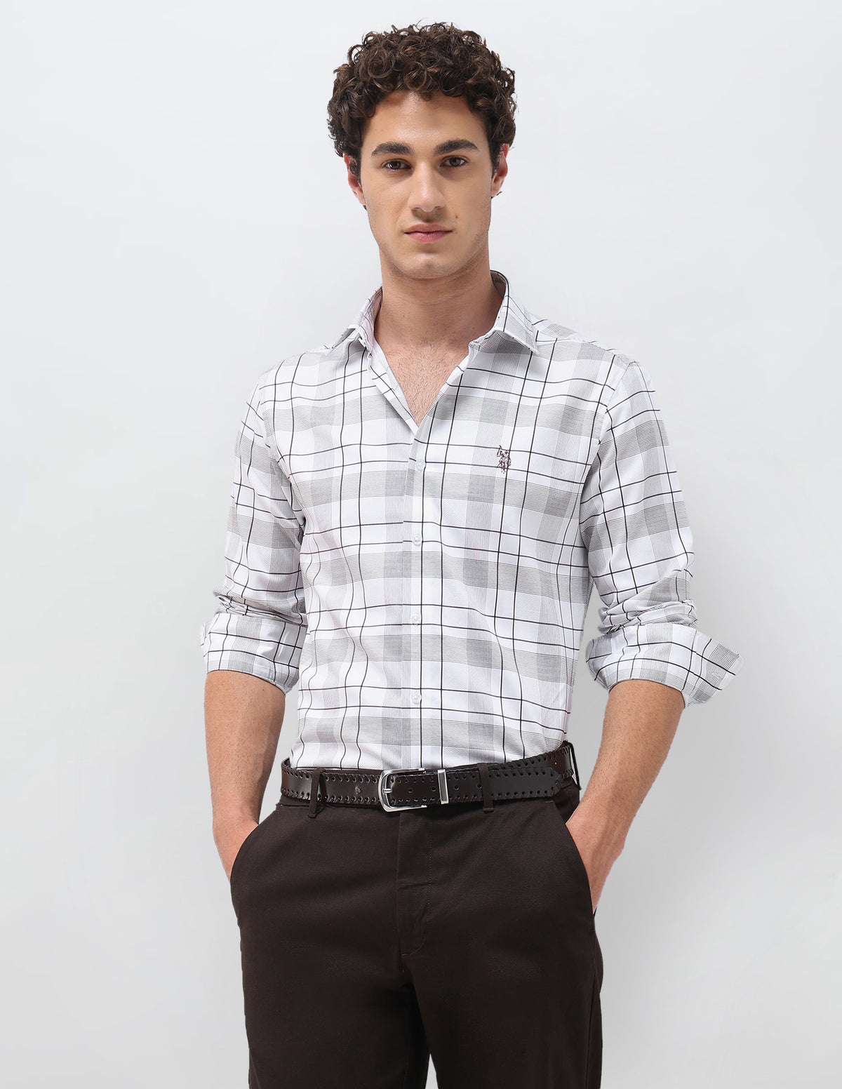 Story: Made from ydc satin dobby, this men's checked shirt blends refined texture with casual versatility, offering polished comfort for everyday wear.