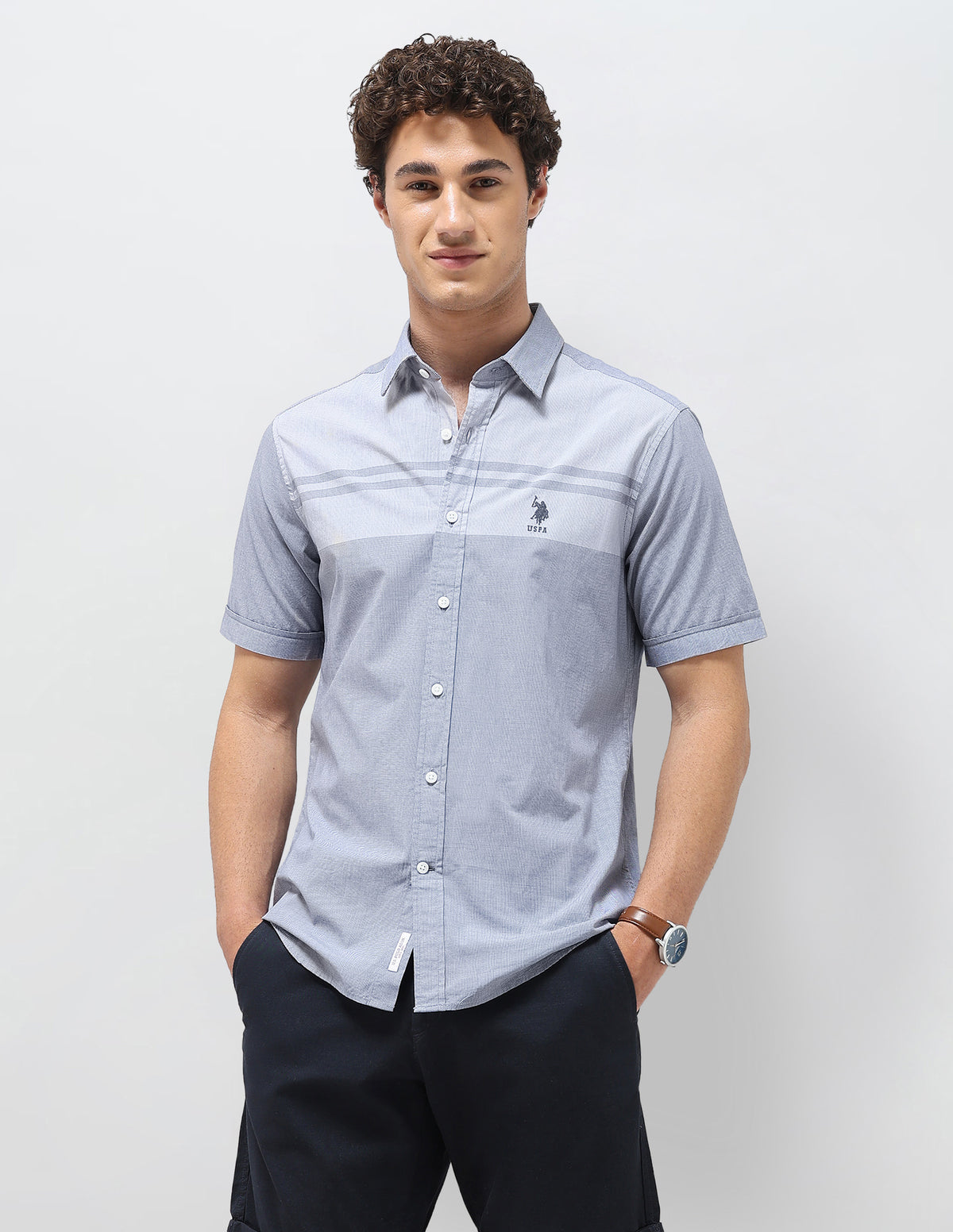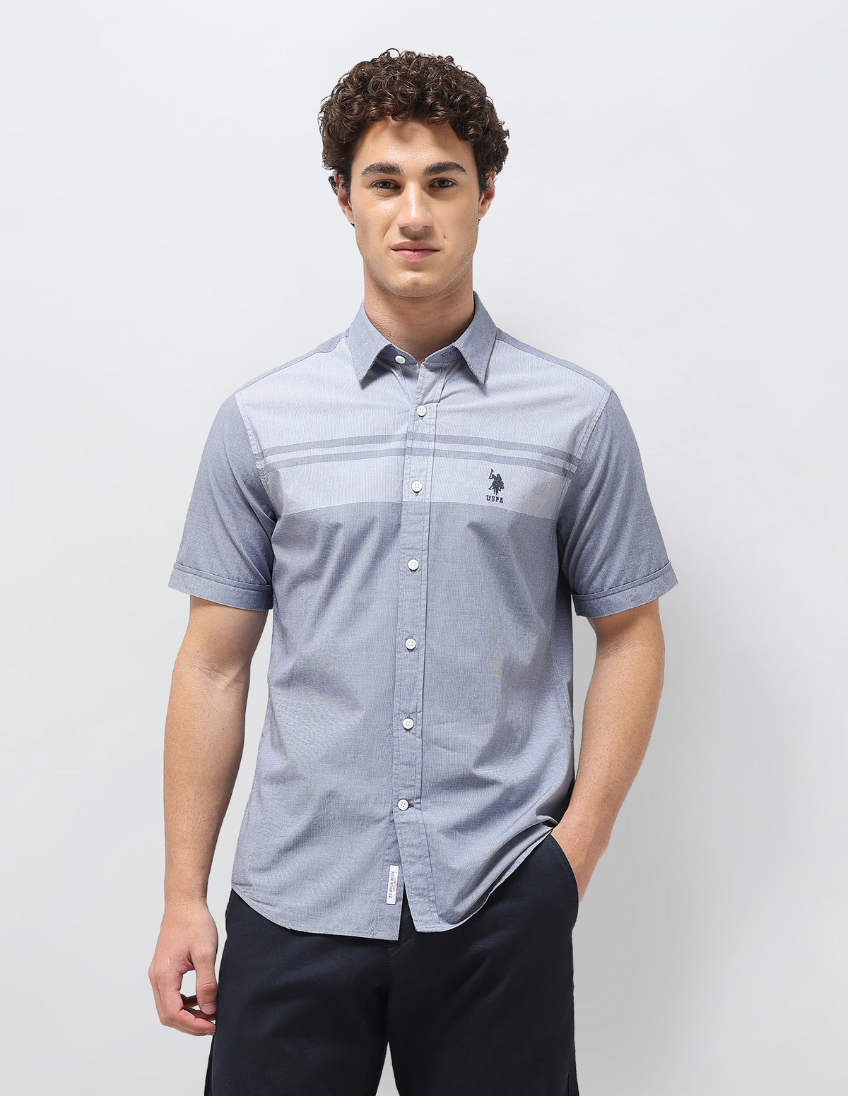 Solid Stripe Detail Regular Fit Shirt