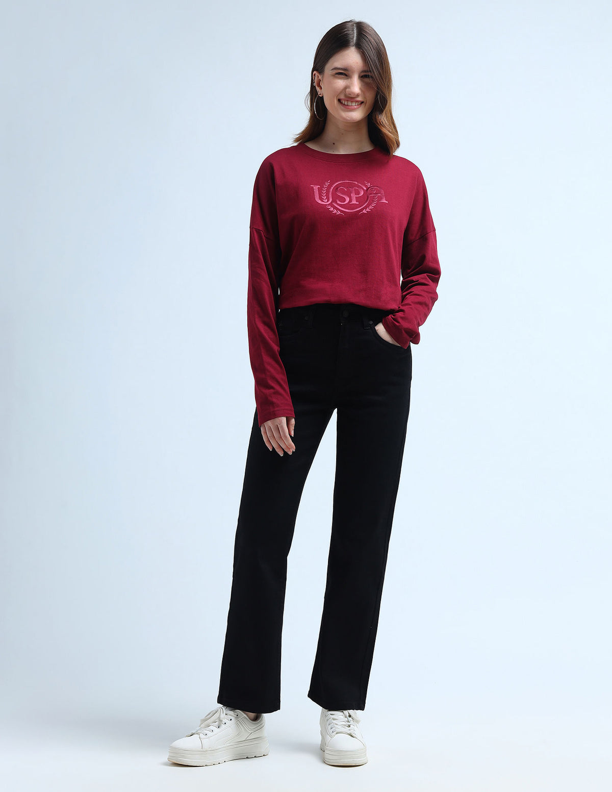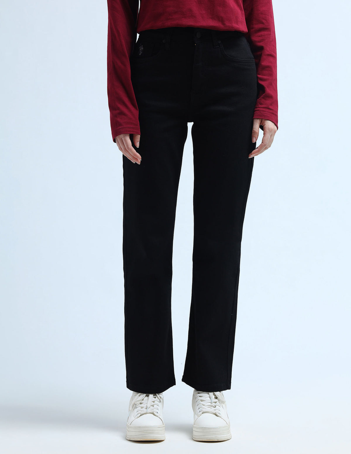 | High-rise waist | Button and zip fly closure | Five pockets | Clean look | Twill weave | Straight fit
