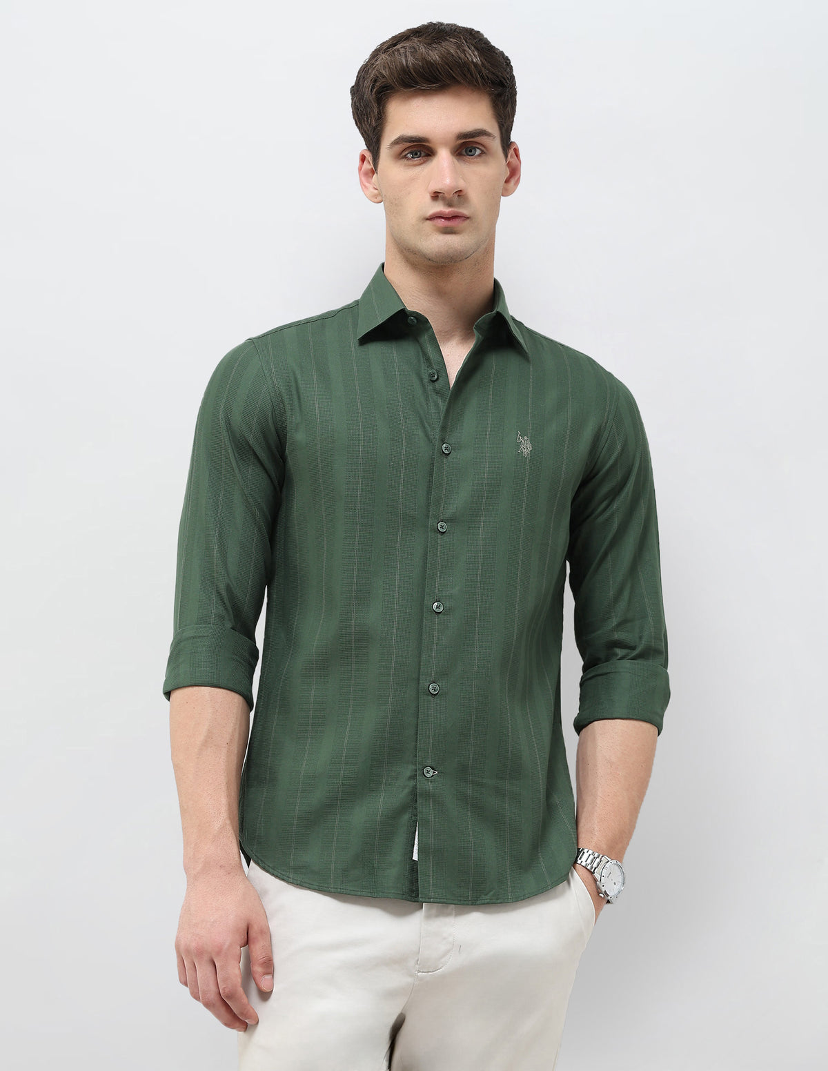 Regular Fit Textured With Vertical Striped Shirt
