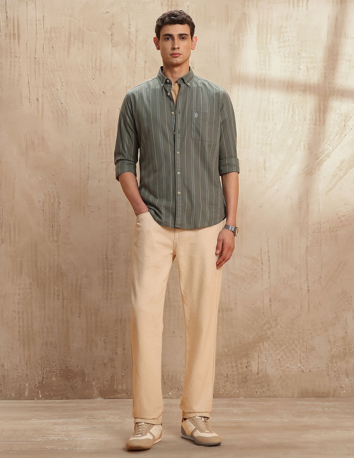 - Button-down collar