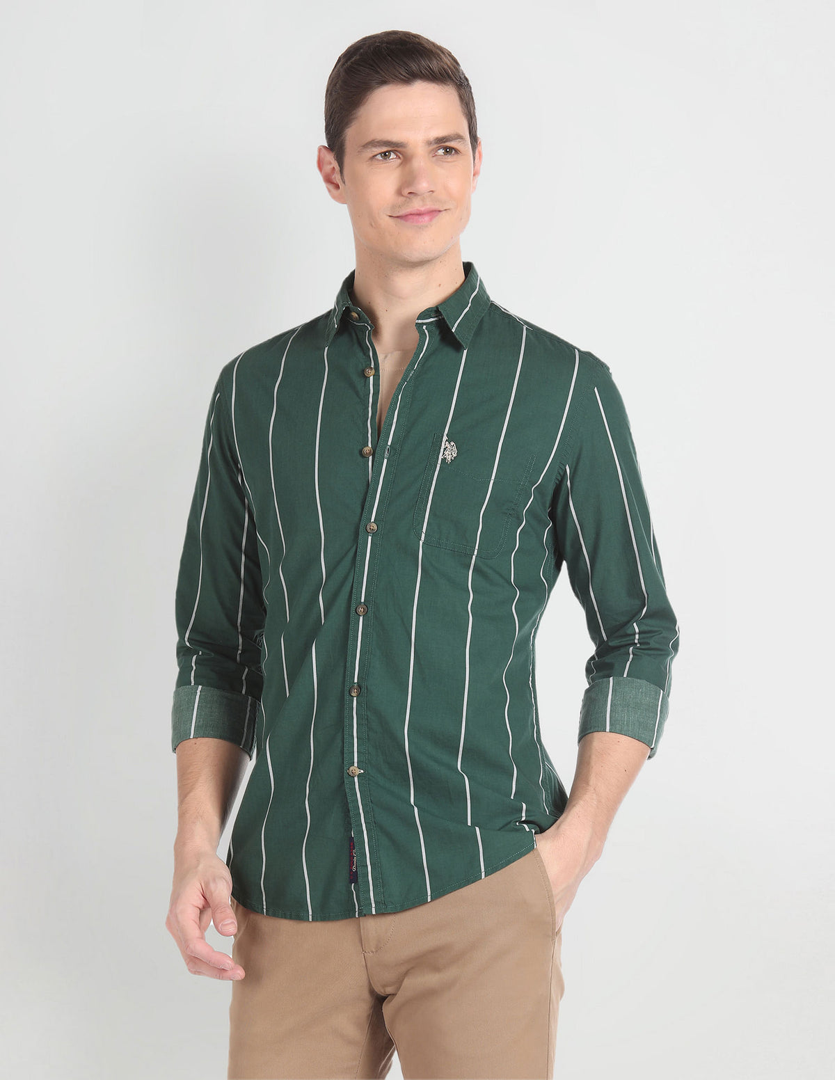 Story: Upgrade your wardrobe with this stylish shirt that comes in cotton construction and has a full button placket.