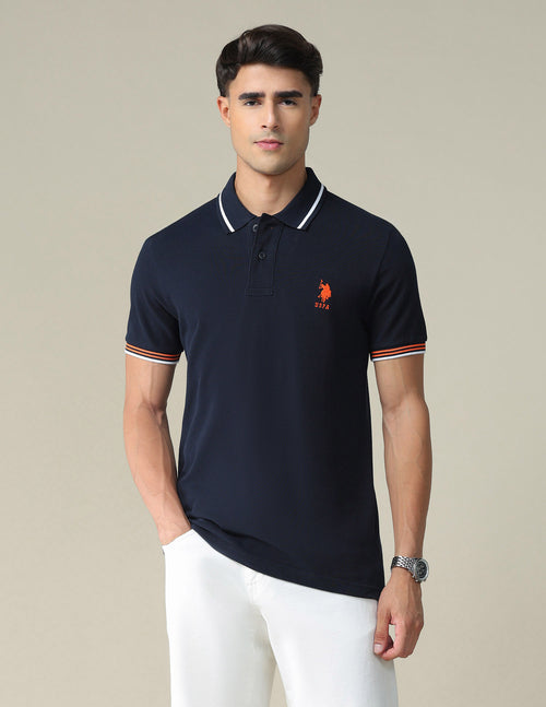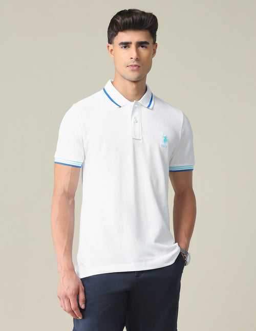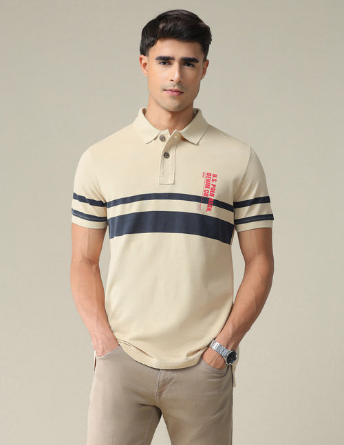 Horizontal Engineered Stripe Cotton Polo Shirt