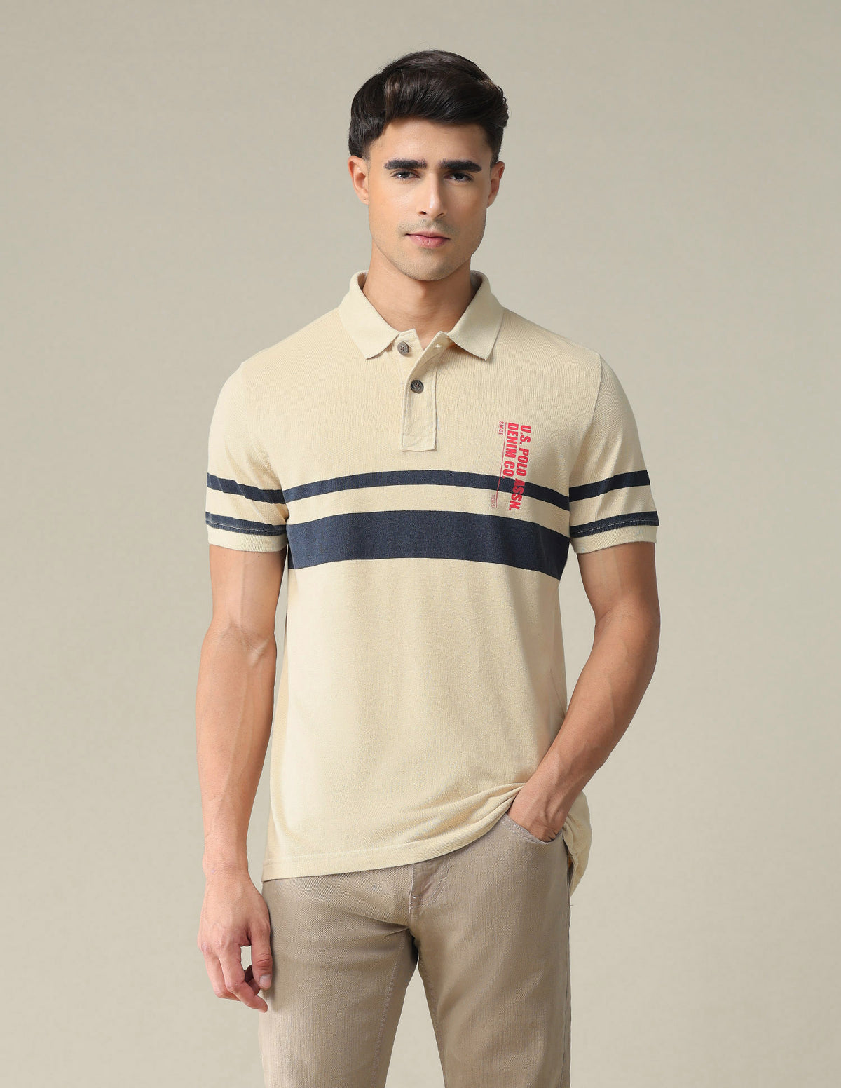 Horizontal Engineered Stripe Cotton Polo Shirt