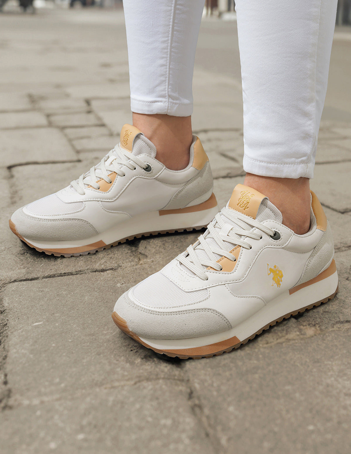 - Panelled upper with logo