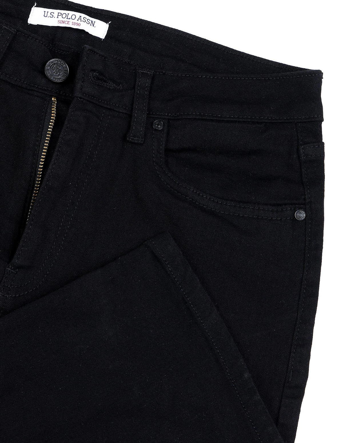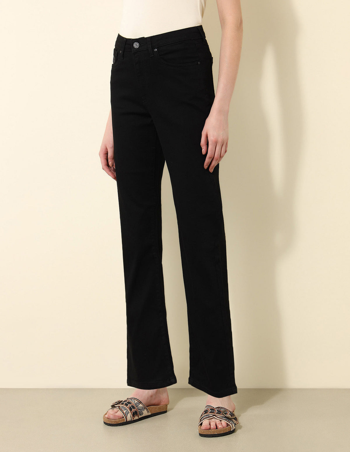 | Ultra High-rise waist | Button and zip fly closure | Five pockets | Dark wash | Denim weave | Bootcut |