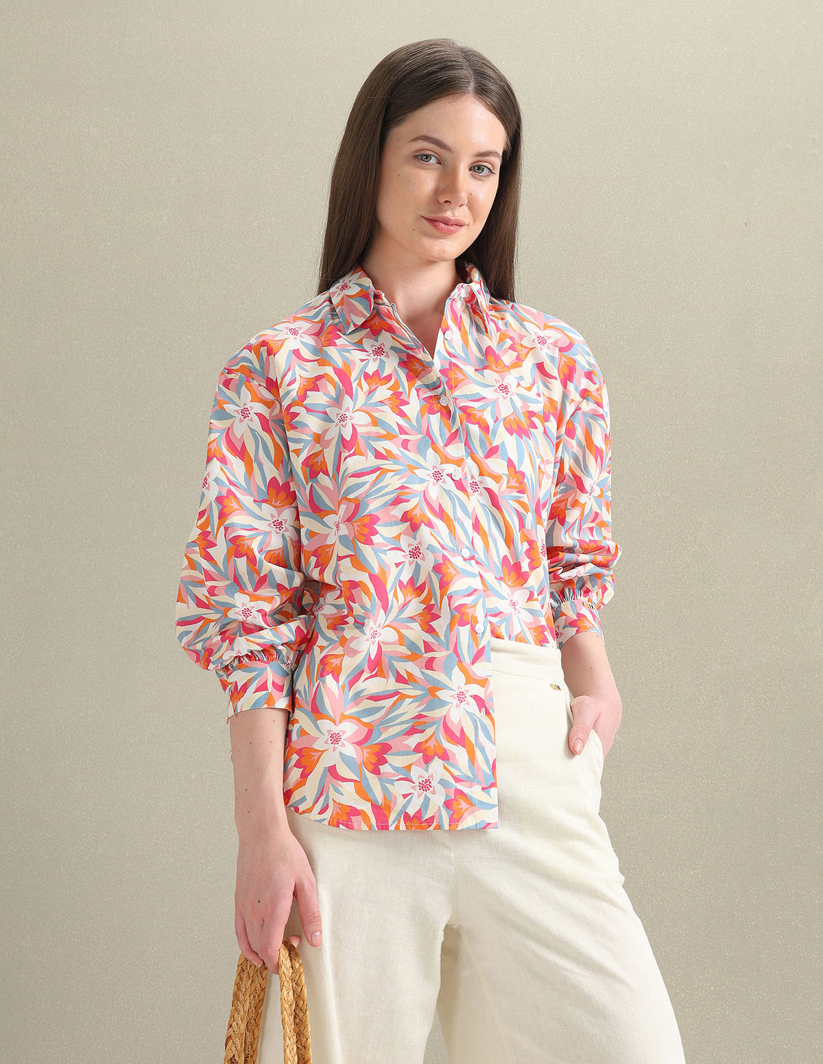Story: Prepare for the sizzle of summer with the Sunshine Ready collection, inspired by Brazil's lively essence, boasting bold colours, vibrant patterns and intricate crochet details for a bright and spirited ensemble. From the Sunshine Ready collection, this regular-fit shirt features a spread collar and a full button placket, offering a timeless look. With long sleeves adorned with barrel cuffs and a floral printed pattern, it boasts a versatile style that seamlessly transitions from casual to semi-formal occasions.