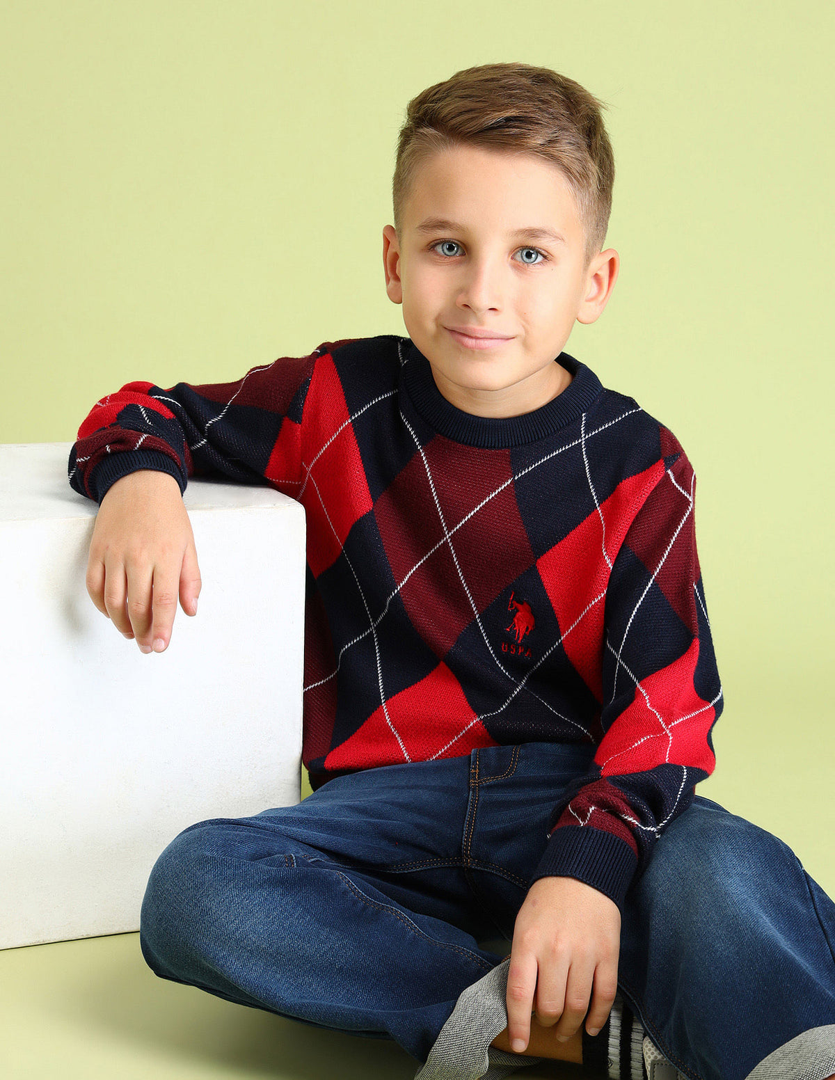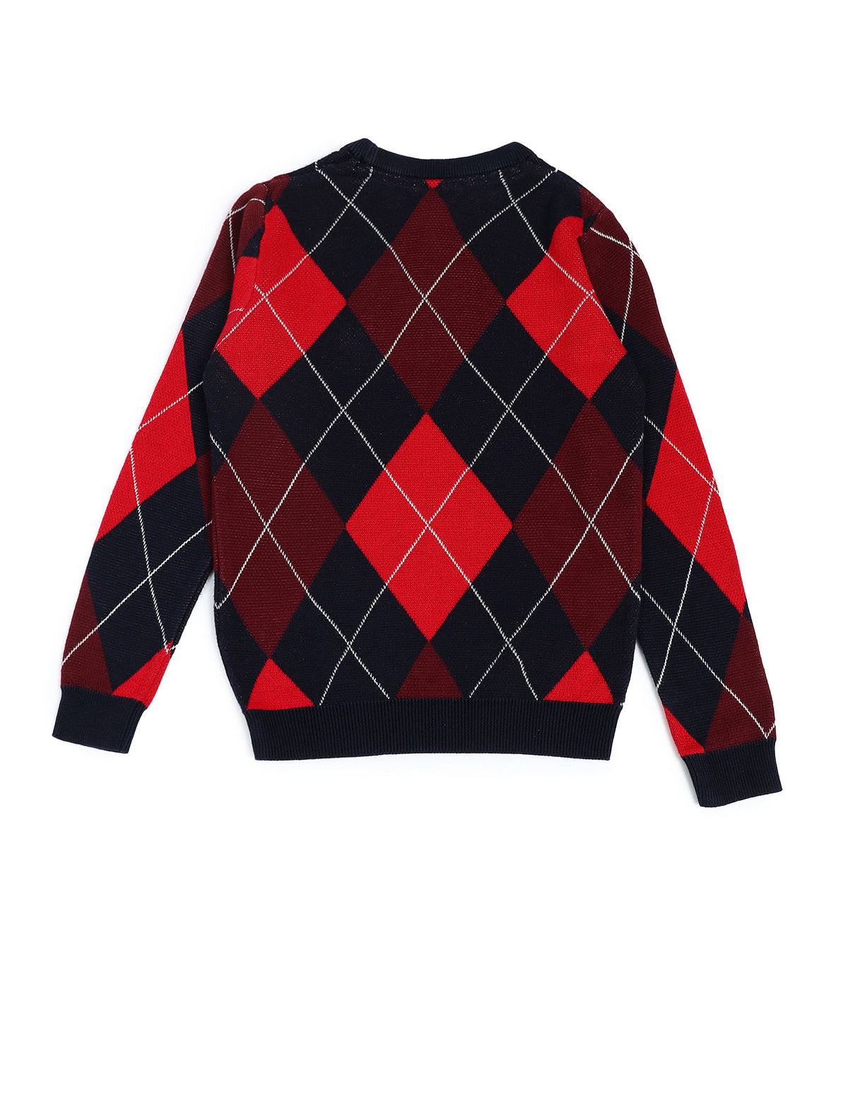 | Crew neck | Long sleeves | Ribbed neck, sleeve hems and hemline | Argyle pattern | Patterned knit |