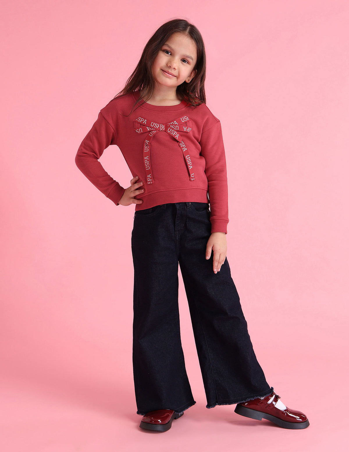| Crew neck | Long sleeves | Ribbed collar, sleeve hems and hemline | Brand appliqued pattern | Knitted |