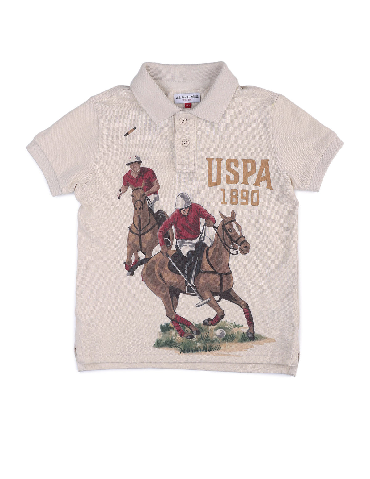 Story: Make a statement in this boys' polo with chest print, featuring a stylish logo for casual, trendy looks.