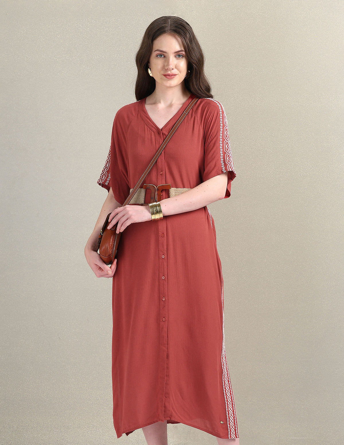 Story: Elevate your summer wardrobe with this breathable viscose dress from the Sun & Sand collection, embodying effortless style with unique embroidered details.